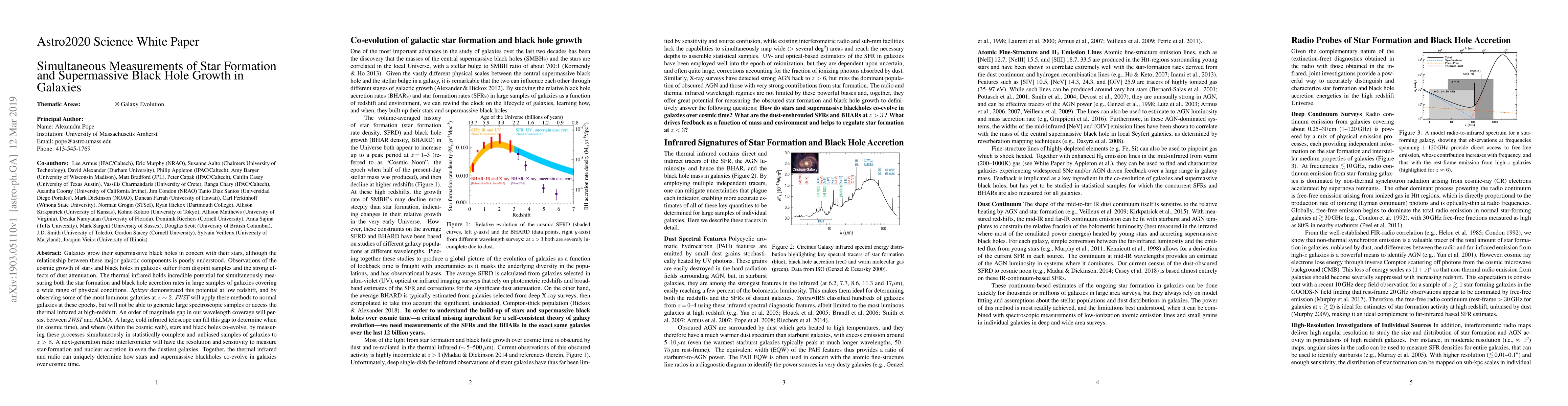 This paper discusses the simultaneous measurement of star formation and supermassive black hole growth in galaxies using thermal infrared and radio observations. It highlights the potential of large, cold infrared telescopes and next-generation radio interferometers to bridge observational gaps and provide comprehensive insights into the co-evolution of stars and black holes across cosmic time.