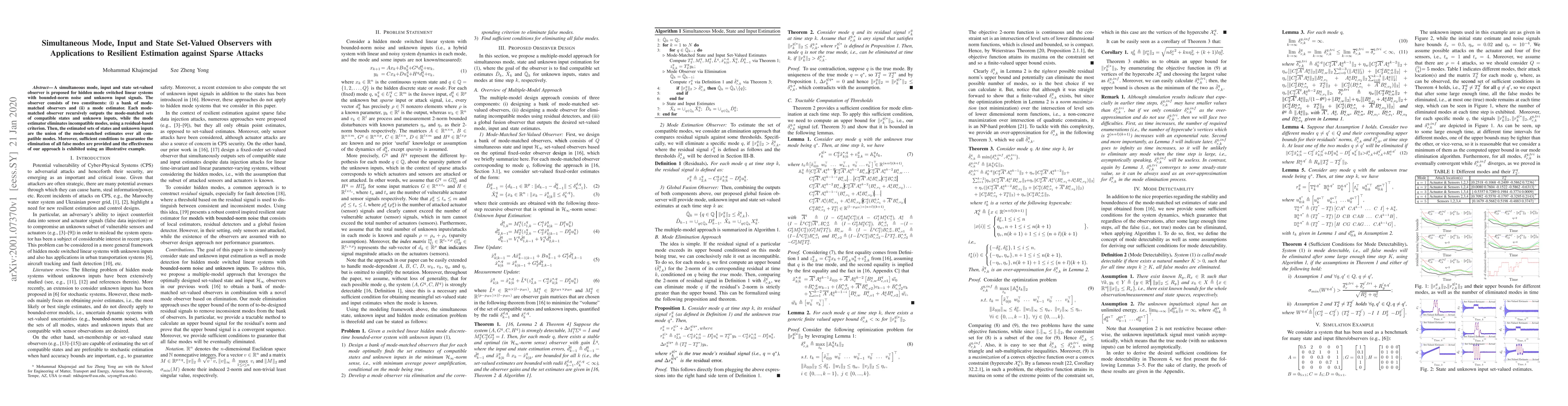 This paper proposes a simultaneous mode, input, and state set-valued observer for resilient estimation in hidden mode switched linear systems, featuring a bank of mode-matched observers and a mode estimator to eliminate false modes. The method ensures accurate estimation despite sparse attacks and bounded-norm noise.