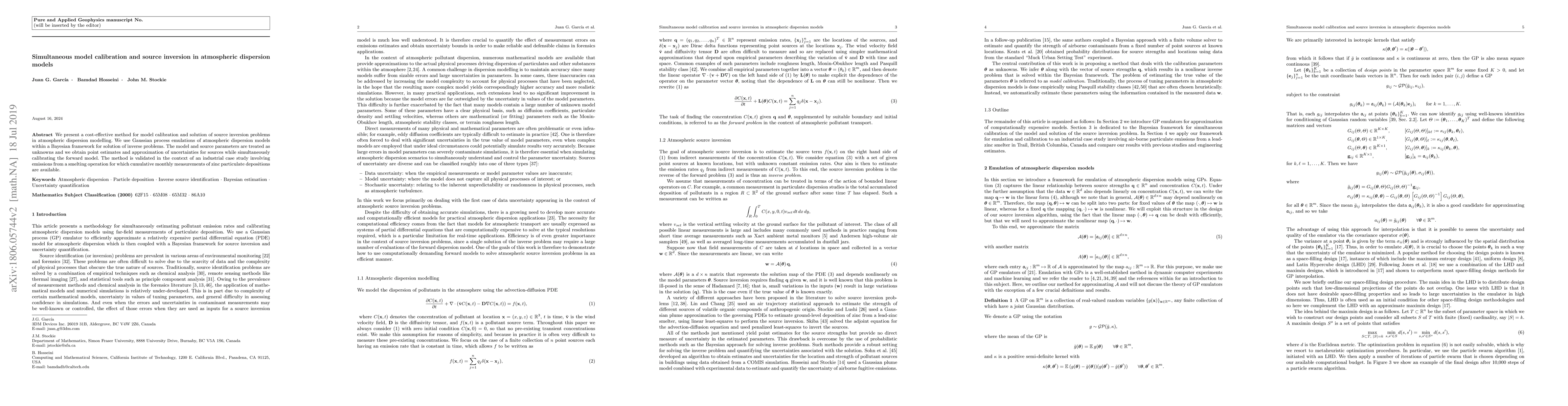 This paper introduces a cost-effective method for calibrating atmospheric dispersion models and solving source inversion problems using Gaussian process emulations within a Bayesian framework. The method simultaneously estimates model parameters and source uncertainties, validated through an industrial case study of zinc particulate emissions.