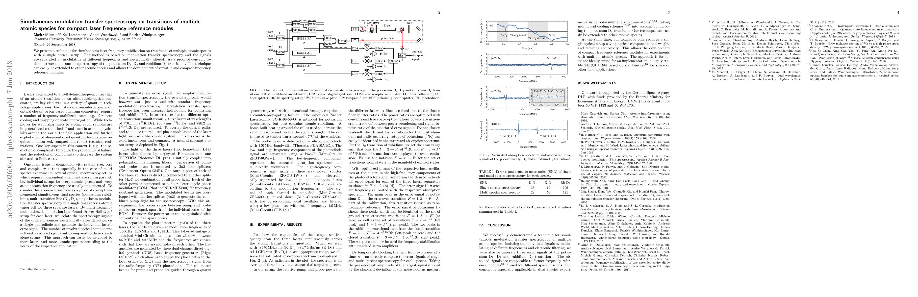 This paper introduces a technique for stabilizing laser frequencies on multiple atomic species using modulation transfer spectroscopy in a single setup, demonstrating its application on potassium and rubidium transitions, and suggesting its potential for versatile, compact frequency reference modules.