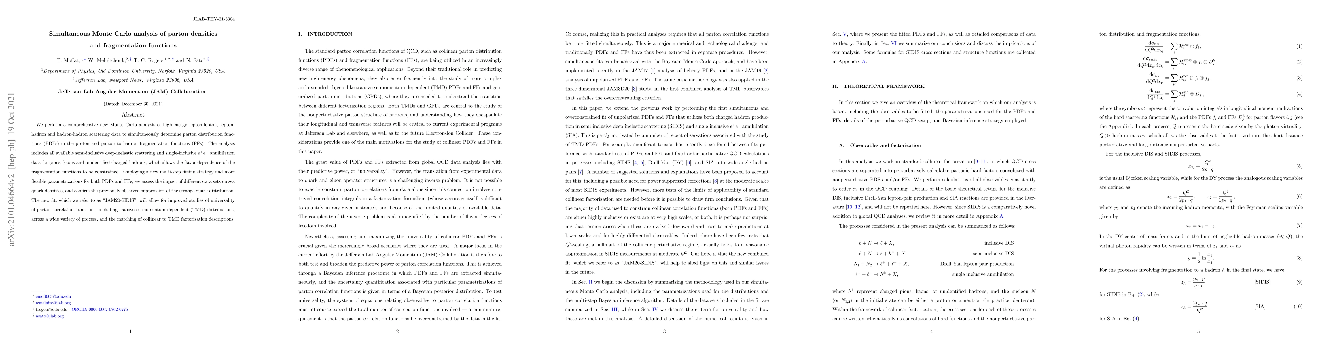 This paper presents a new Monte Carlo analysis to simultaneously determine parton distribution functions and fragmentation functions using high-energy scattering data, confirming the suppression of strange quark distribution and introducing the "JAM20-SIDIS" fit for improved studies of parton correlations.