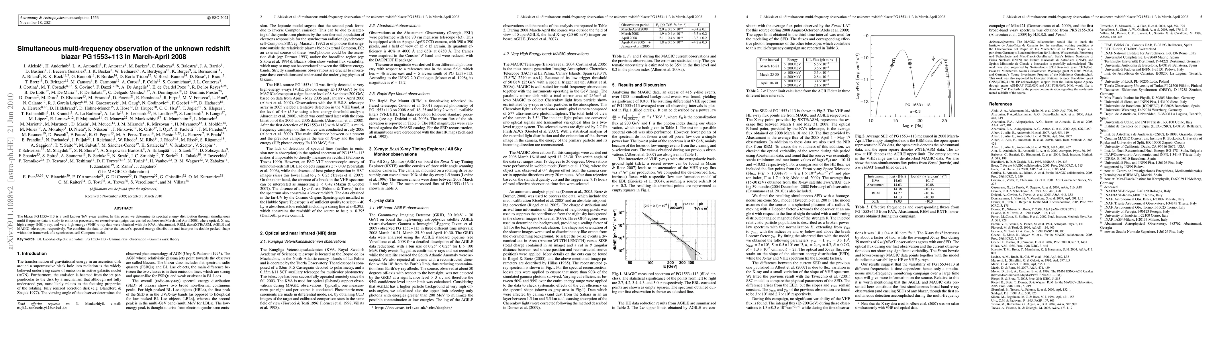 The blazar PG 1553+113 is a well known TeV gamma-ray emitter. In this paper, we determine its spectral energy distribution using simultaneous multi-frequency data in order to study its emission processes. An extensive campaign was carried out between March and April 2008, where optical, X-ray, high-energy (HE) gamma-ray, and very-high-energy (VHE) gamma-ray data were obtained with the KVA, Abastumani, REM, RossiXTE/ASM, AGILE and MAGIC telescopes, respectively. This is the first simultaneous broad-band (i.e., HE+VHE) gamma-ray observation, though AGILE did not detect the source. We combine data to derive source's spectral energy distribution and interpret its double peaked shape within the framework of a synchrotron self compton model
