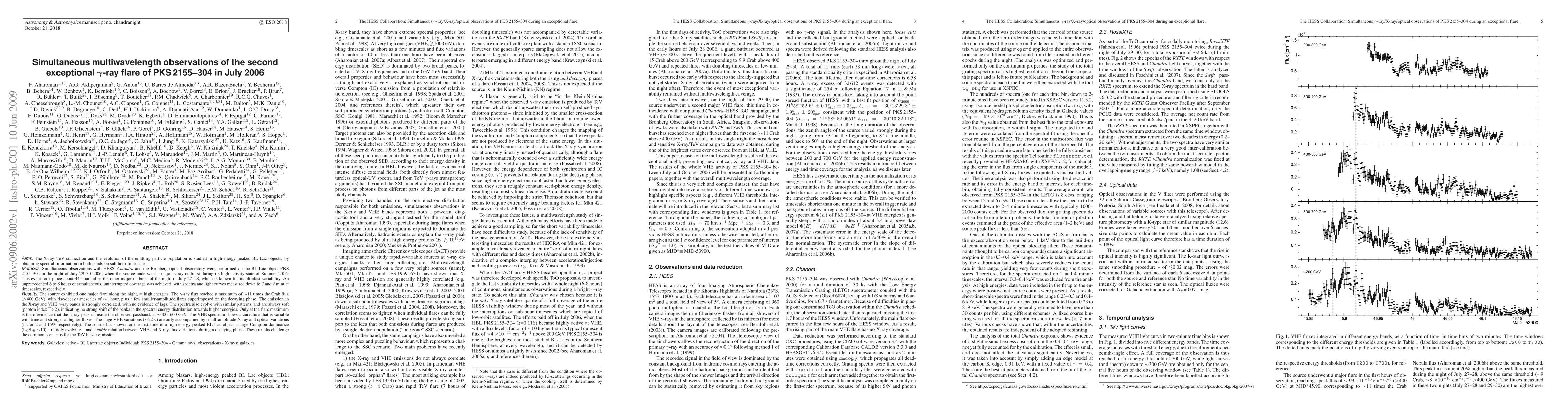 Simultaneous HESS/CHANDRA/optical observations were performed on the BL Lac object PKS 2155-304 in the night of July 29-30 2006, when the source underwent its second major gamma-ray outburst in Summer 2006. This event took place about 44 hours after the July 28 outburst, known for its ultrafast variability. An unprecedented 6 to 8 hours of uninterrupted coverage was achieved, with spectra and light curves measured down to 7 and 2-minute timescales, respectively. The gamma-ray flux reached a maximum of 11x the Crab flux (>400 GeV), with rise/decay timescales of ~1 hour, plus a few smaller-amplitude flares superimposed on the decaying phase. The emission in the X-ray and VHE bands is strongly correlated, both in flux and spectrum, with no evidence of lags. The VHE spectrum shows a curvature that is variable with time and stronger at higher fluxes. The huge VHE variations (22x) are only accompanied by small-amplitude X-ray and optical variations (factor 2 and 15% respectively). The source has shown for the first time in an HBL a large Compton dominance (L_C/L_S ~10) -- rapidly evolving -- and a cubic relation between VHE and X-ray flux variations, during a decaying phase. These results challenge the common scenarios for the TeV-blazar emission.