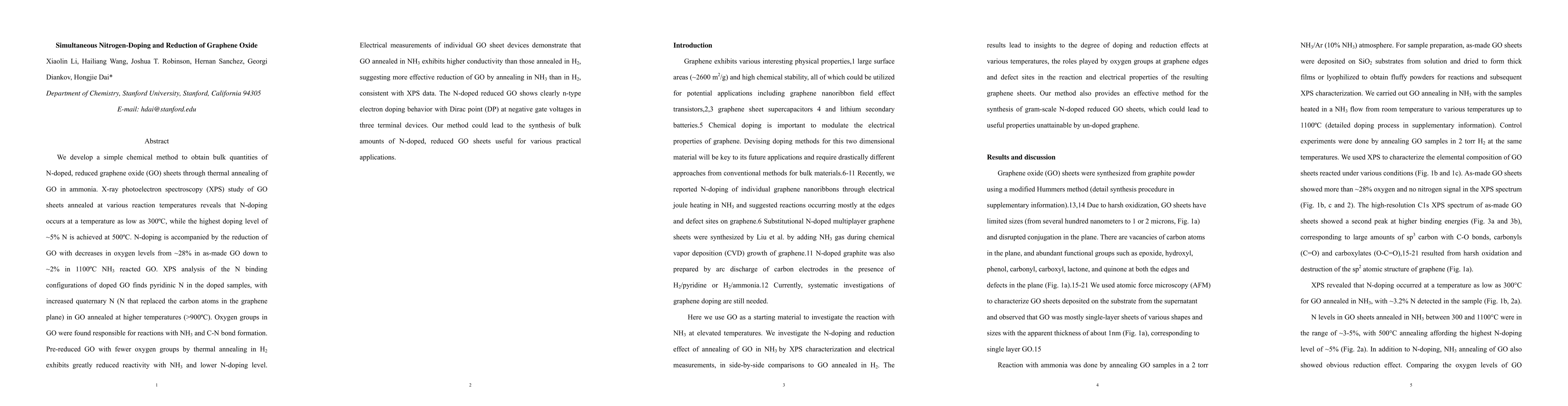 Researchers developed a method to create bulk quantities of nitrogen-doped, reduced graphene oxide sheets through thermal annealing in ammonia, achieving higher conductivity and n-type electron doping behavior with Dirac point at negative gate voltages.