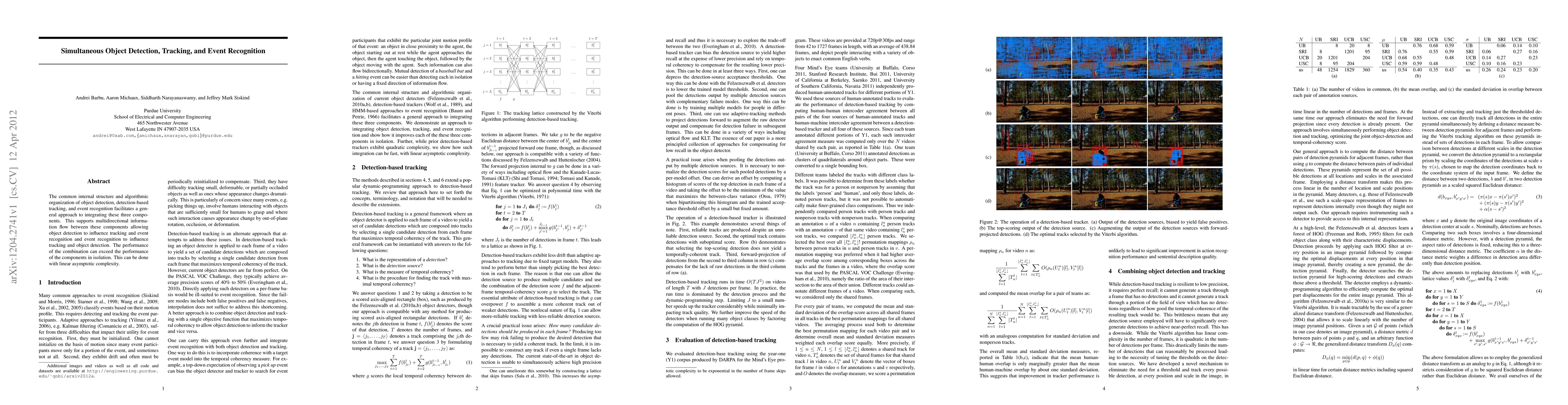 This paper proposes an integrated framework for simultaneous object detection, tracking, and event recognition, demonstrating that multidirectional information flow among these components can enhance overall performance, achieving linear asymptotic complexity.