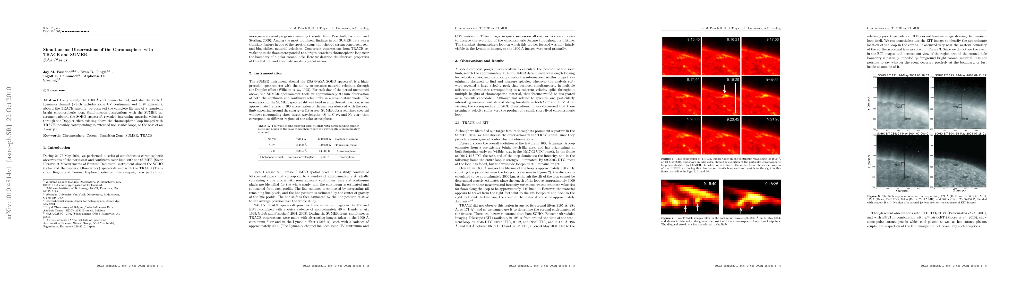 This study uses TRACE satellite observations to monitor a transient chromospheric loop's full lifecycle, while SUMER on SOHO provides simultaneous data revealing material velocities via Doppler shifts, suggesting extended non-visible loops or X-ray jet bases.