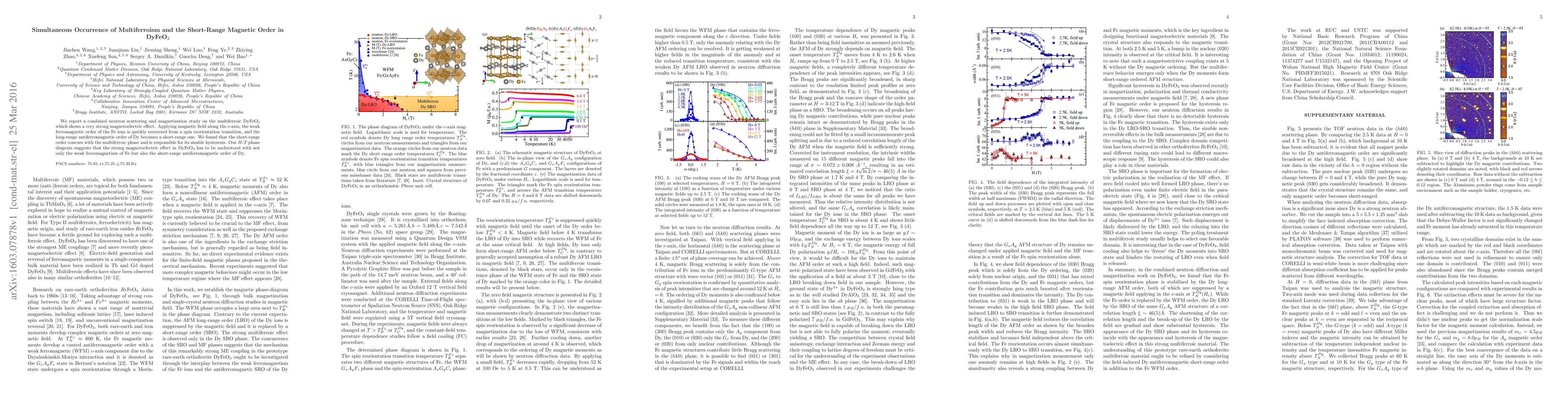 Researchers discovered a strong magnetoelectric effect in DyFeO3, where a magnetic field can recover weak ferromagnetism and induce short-range antiferromagnetic order, which is responsible for the material's sizable hysteresis.