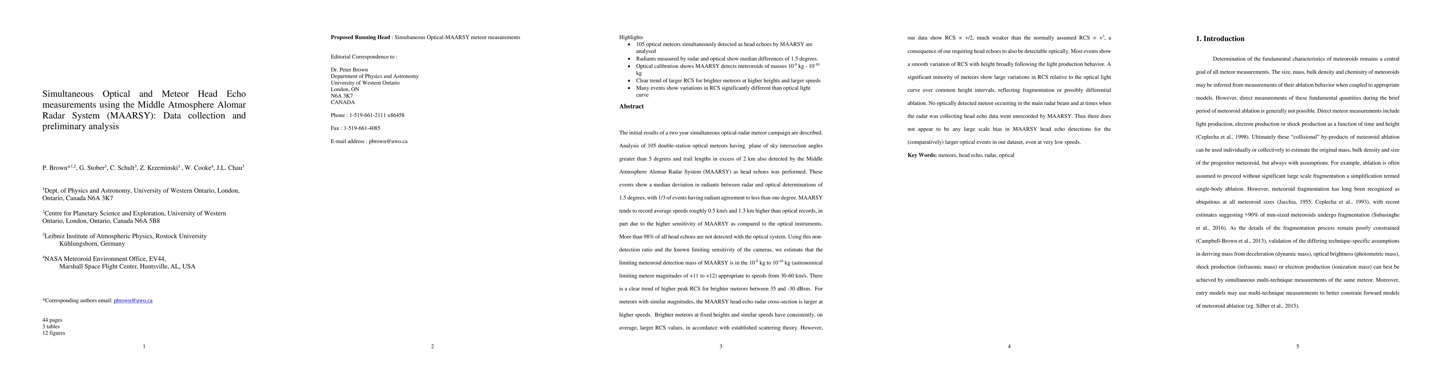 This study combines optical and radar meteor data from a two-year campaign using MAARSY, revealing discrepancies in detection and speed measurements between optical and radar systems. The radar detects significantly more meteors than optical systems, suggesting a lower detection mass limit for MAARSY.