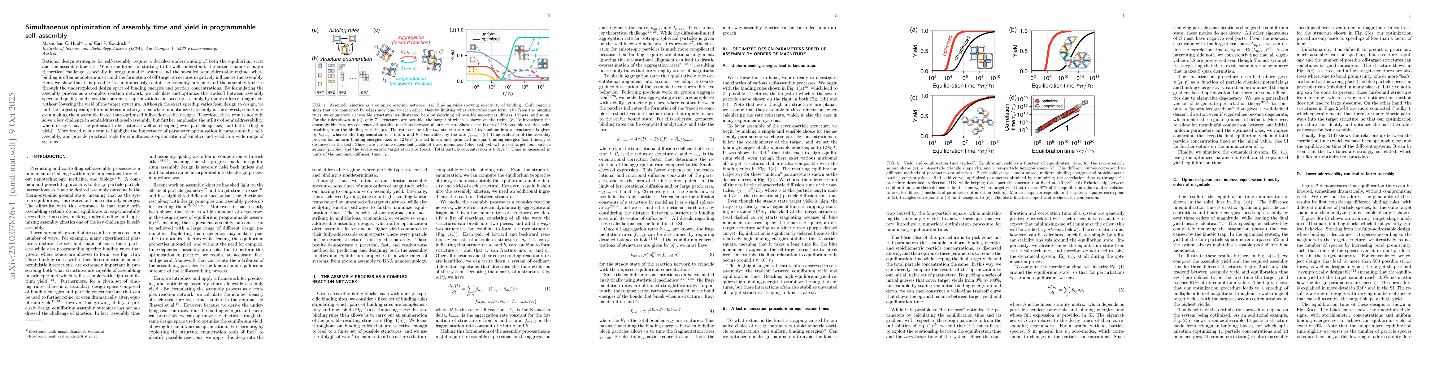Rational design strategies for self-assembly require a detailed understanding of both the equilibrium state and the assembly kinetics. While the former is starting to be well understood, the latter remains a major theoretical challenge, especially in programmable systems and the so-called semiaddressable regime, where binding is often nondeterministic and the formation of off-target structures negatively influences the assembly. Here, we show that it is possible to simultaneously sculpt the assembly outcome and the assembly kinetics through the underexplored design space of binding energies and particle concentrations. By formulating the assembly process as a complex reaction network, we calculate and optimize the tradeoff between assembly speed and quality, and show that parameter optimization can speed up assembly by many orders of magnitude without lowering the yield of the target structure. Although the exact speedup varies from design to design, we find the largest speedups for nondeterministic systems where unoptimized assembly is the slowest, sometimes even making them assemble faster than optimized fully-addressable designs. Therefore, these results not only solve a key challenge in semiaddressable self-assembly, but further emphasize the utility of semiaddressability, where designs have the potential to be faster as well as cheaper (fewer particle species) and better (higher yield). More broadly, our results highlight the importance of parameter optimization in programmable self-assembly, and provide practical tools for simultaneous optimization of kinetics and yield in a wide range of systems.