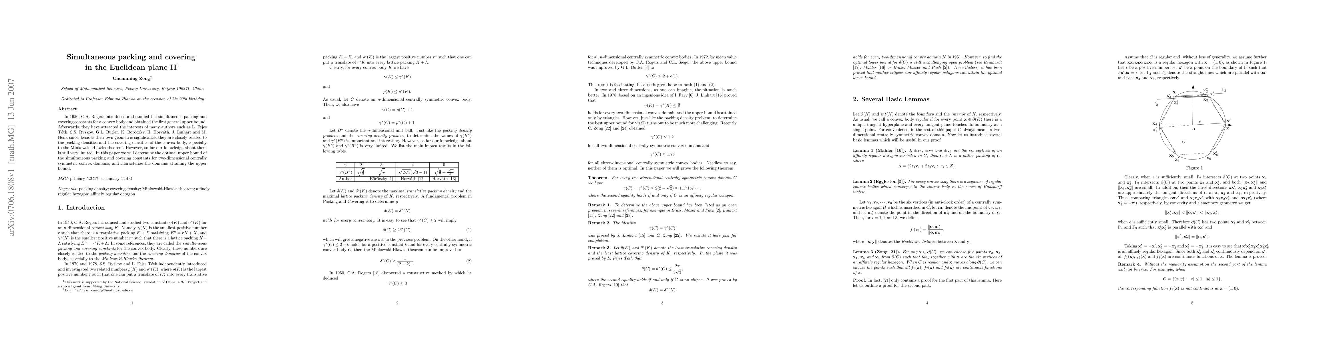 This paper determines the optimal upper bound for the simultaneous packing and covering constants of the two-dimensional centrally symmetric convex domains. It solved a problem opening for more than thirty years.