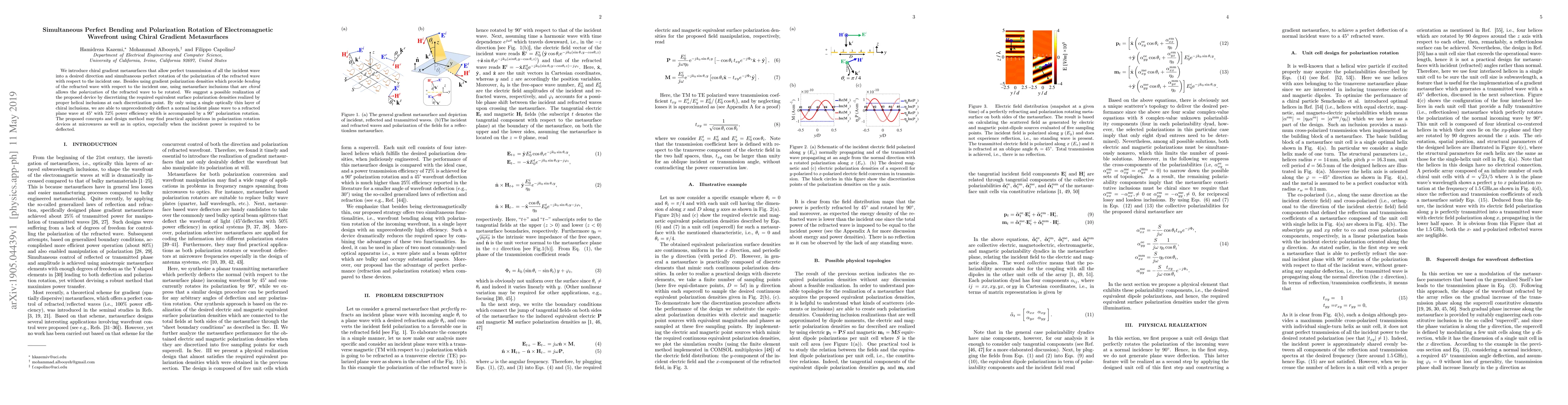 This paper presents chiral gradient metasurfaces that enable perfect bending and polarization rotation of electromagnetic wavefronts. The device achieves a $45^{\circ}$ deflection with $72\%$ power efficiency and a $90^{\circ}$ polarization rotation using a single optically thin layer of chiral inclusions.