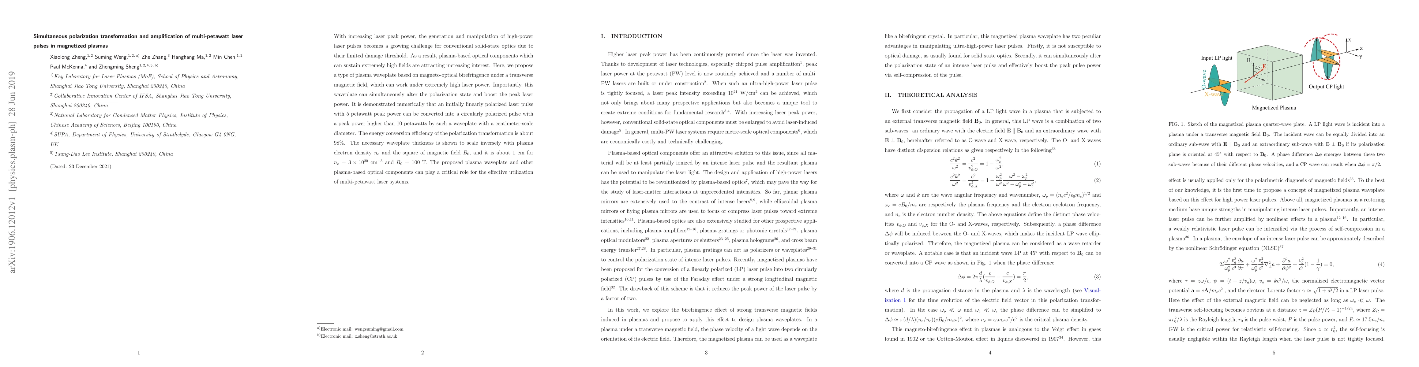 The introduction of a plasma waveplate capable of simultaneously altering polarization state and amplifying peak laser power under high magnetic fields in magnetized plasmas.