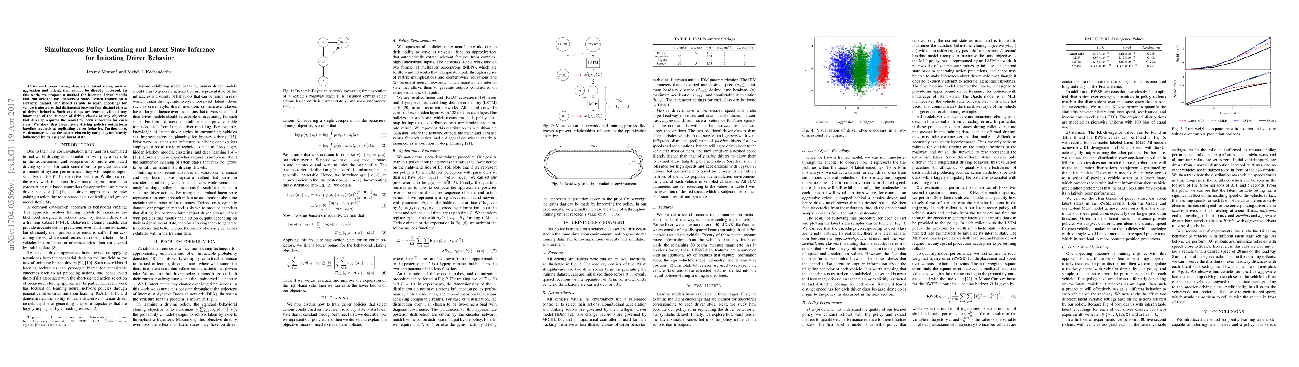 This paper proposes a method for learning driver models that infer unobservable latent variables, successfully distinguishing between four driver behavior classes. The trained models effectively imitate driver behavior, showing improved performance over baseline methods, with actions significantly influenced by provided latent variables.