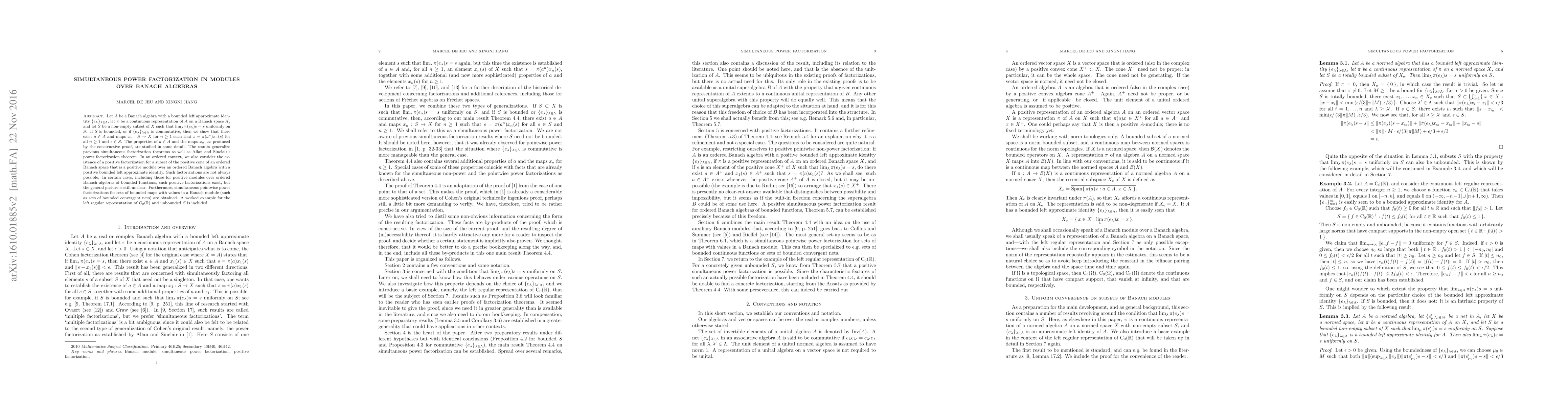 Let $A$ be a Banach algebra with a bounded left approximate identity $\{e_\lambda\}_{\lambda\in\Lambda}$, let $\pi$ be a continuous representation of $A$ on a Banach space $X$, and let $S$ be a non-empty subset of $X$ such that $\lim_{\lambda}\pi(e_\lambda)s=s$ uniformly on $S$. If $S$ is bounded, or if $\{e_\lambda\}_{\lambda\in\Lambda}$ is commutative, then we show that there exist $a\in A$ and maps $x_n: S\to X$ for $n\geq 1$ such that $s=\pi(a^n)x_n(s)$ for all $n\geq 1$ and $s\in S$. The properties of $a\in A$ and the maps $x_n$, as produced by the constructive proof, are studied in some detail. The results generalize previous simultaneous factorization theorems as well as Allan and Sinclair's power factorization theorem. In an ordered context, we also consider the existence of a positive factorization for a subset of the positive cone of an ordered Banach space that is a positive module over an ordered Banach algebra with a positive bounded left approximate identity. Such factorizations are not always possible. In certain cases, including those for positive modules over ordered Banach algebras of bounded functions, such positive factorizations exist, but the general picture is still unclear. Furthermore, simultaneous pointwise power factorizations for sets of bounded maps with values in a Banach module (such as sets of bounded convergent nets) are obtained. A worked example for the left regular representation of $\mathrm{C}_0({\mathbb R})$ and unbounded $S$ is included.