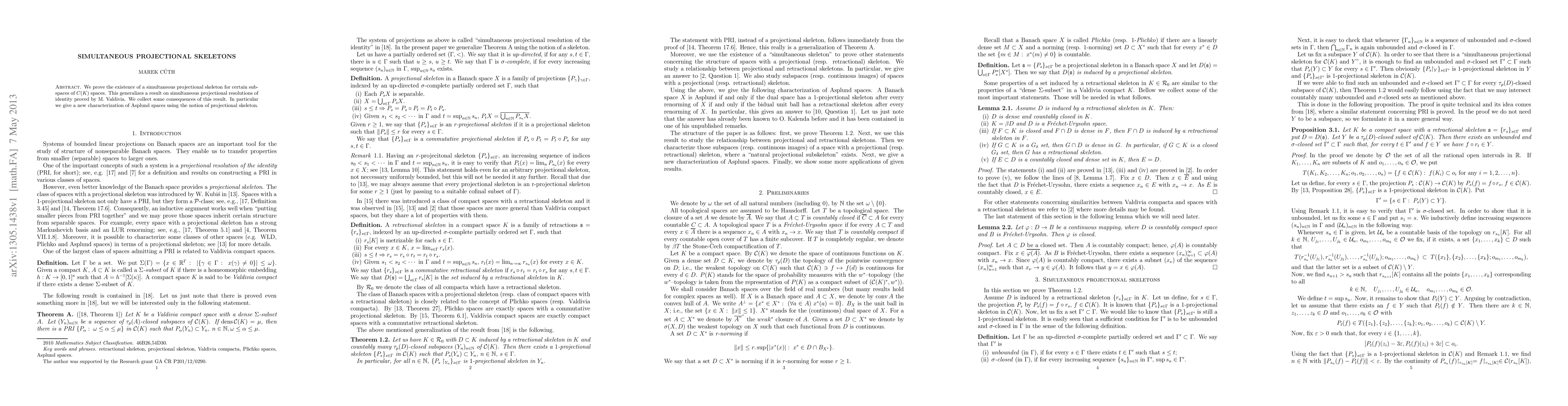 Summary: The paper establishes the existence of a simultaneous projectional skeleton for specific subspaces in $\mathcal{C}(K)$ spaces, extending a prior result by M. Valdivia, and utilizes this to provide a new characterization of Asplund spaces via projectional skeleton.