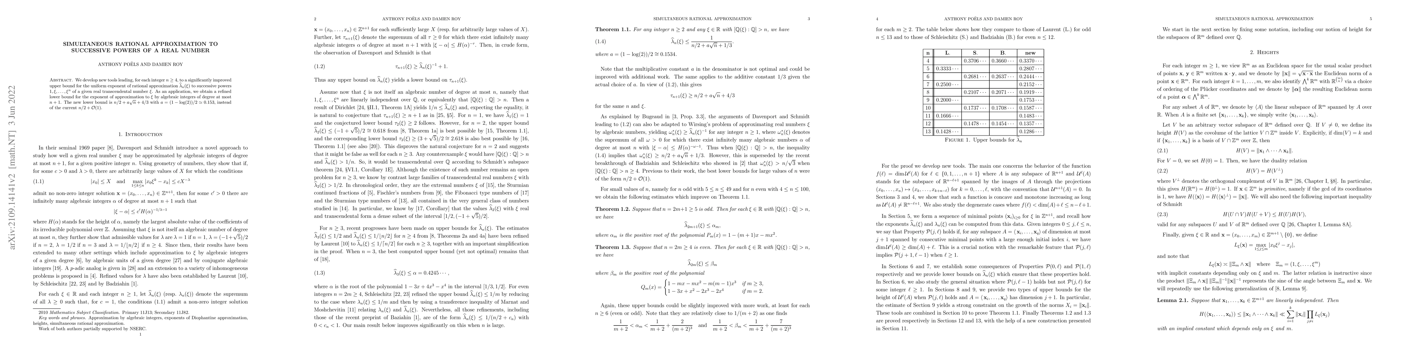 We develop new tools leading, for each integer $n\ge 4$, to a significantly improved upper bound for the uniform exponent of rational approximation $\widehat{\lambda}_n(\xi)$ to successive powers $1,\xi,\dots,\xi^n$ of a given real transcendental number $\xi$. As an application, we obtain a refined lower bound for the exponent of approximation to $\xi$ by algebraic integers of degree at most $n+1$. The new lower bound is $n/2+a\sqrt{n}+4/3$ with $a=(1-\log(2))/2\simeq 0.153$, instead of the current $n/2+\mathcal{O}(1)$.
