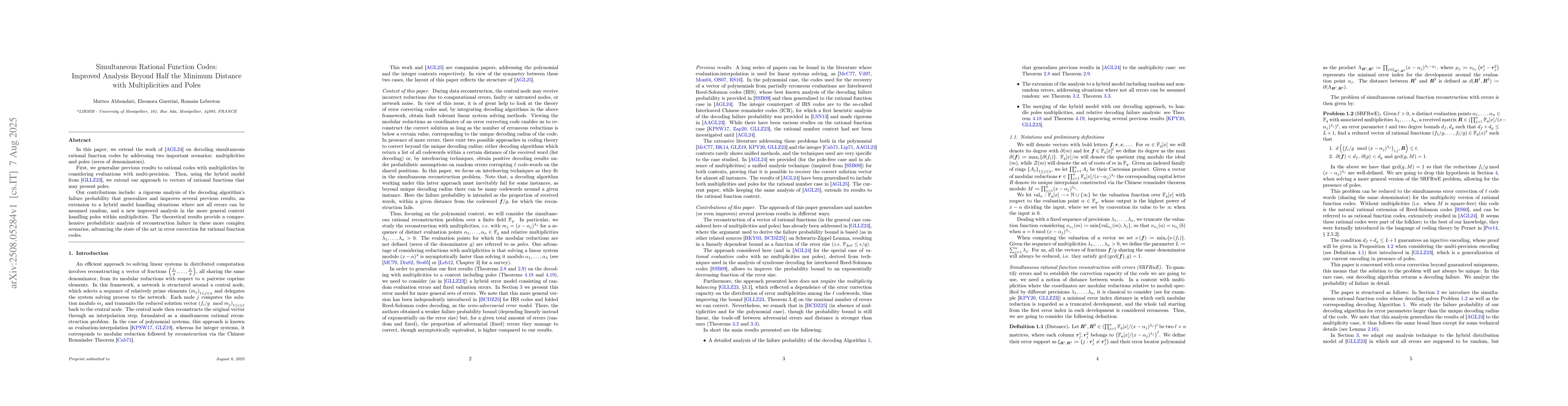 In this paper, we extend the work of Abbondati et al. (2024) on decoding simultaneous rational function codes by addressing two important scenarios: multiplicities and poles (zeros of denominators). First, we generalize previous results to rational codes with multiplicities by considering evaluations with multi-precision. Then, using the hybrid model from Guerrini et al. (2023), we extend our approach to vectors of rational functions that may present poles. Our contributions include: a rigorous analysis of the decoding algorithm's failure probability that generalizes and improves several previous results, an extension to a hybrid model handling situations where not all errors can be assumed random, and a new improved analysis in the more general context handling poles within multiplicities. The theoretical results provide a comprehensive probabilistic analysis of reconstruction failure in these more complex scenarios, advancing the state of the art in error correction for rational function codes.