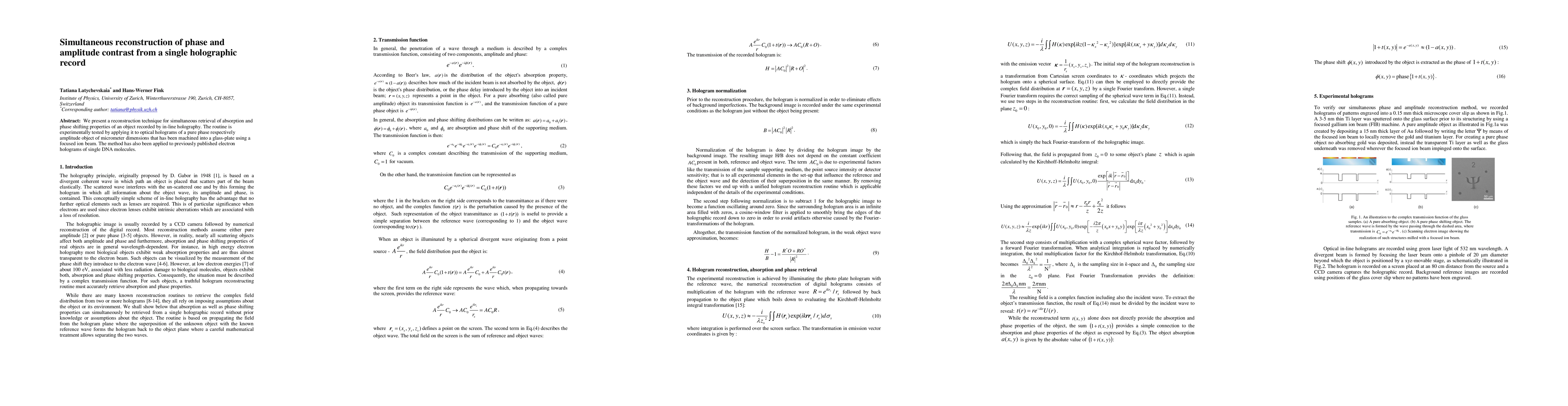 The method was tested on optical and electron holograms of micrometer-sized glass plates and DNA molecules, demonstrating its potential for detailed material analysis.