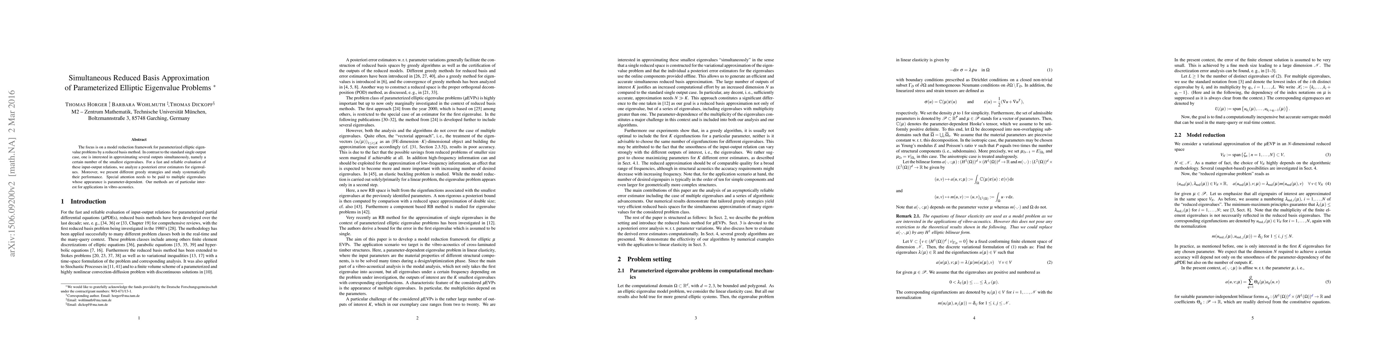 The novelty of this work lies in its simultaneous approximation of multiple eigenvalues using a single reduced basis, along with the development of asymptotically reliable error estimators and tailored greedy strategies for model reduction in elliptic eigenvalue problems.