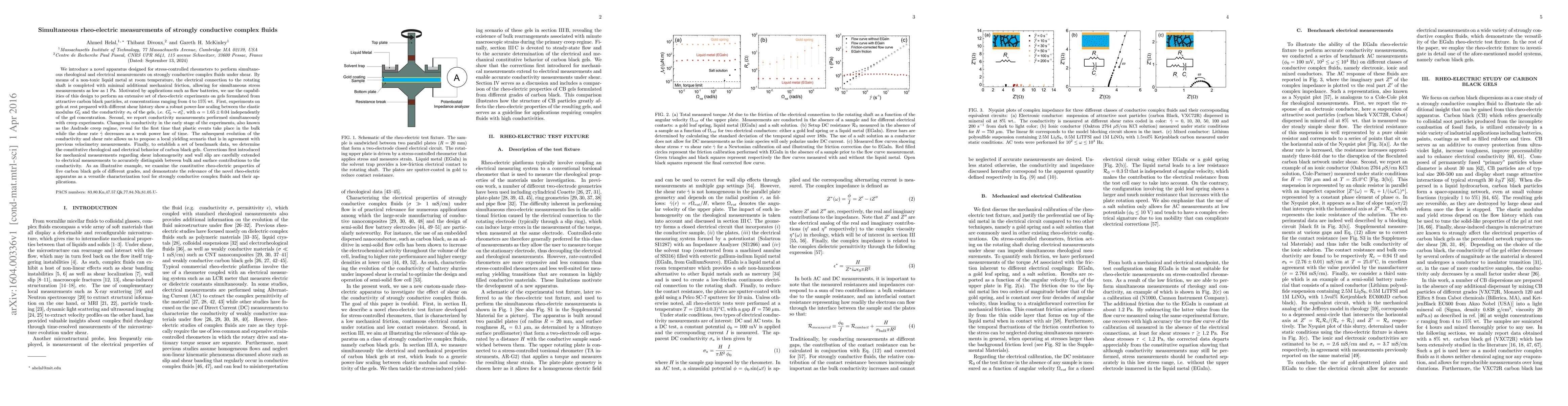 Researchers developed a new apparatus to measure the stress and electrical properties of strongly conductive complex fluids simultaneously. They found that the elastic modulus and conductivity of these fluids follow a power-law scaling relationship and observed plastic events in the bulk of the fluid.