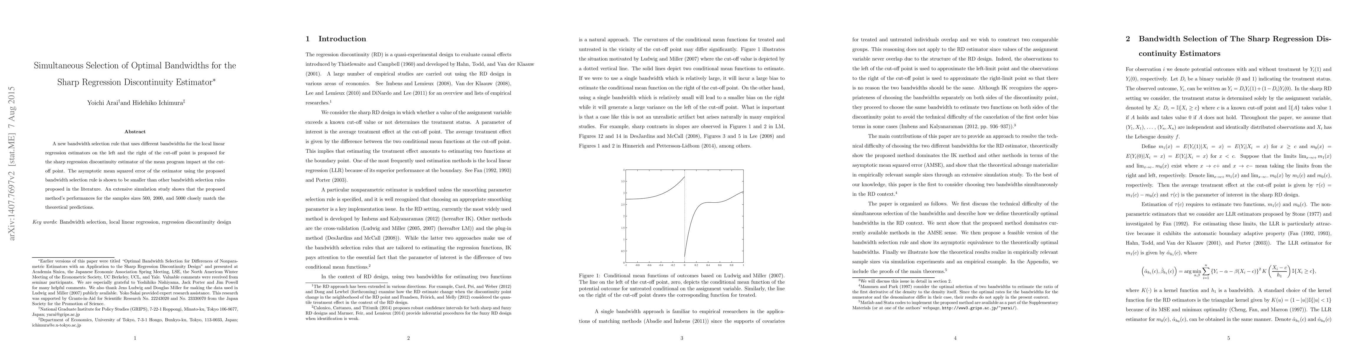 This paper proposes a new bandwidth selection rule for sharp regression discontinuity estimators, using different bandwidths for local linear regressions on either side of the cut-off point. The proposed method is shown to have a smaller asymptotic mean squared error compared to existing methods and performs well in simulations for sample sizes of 500, 2000, and 5000.
