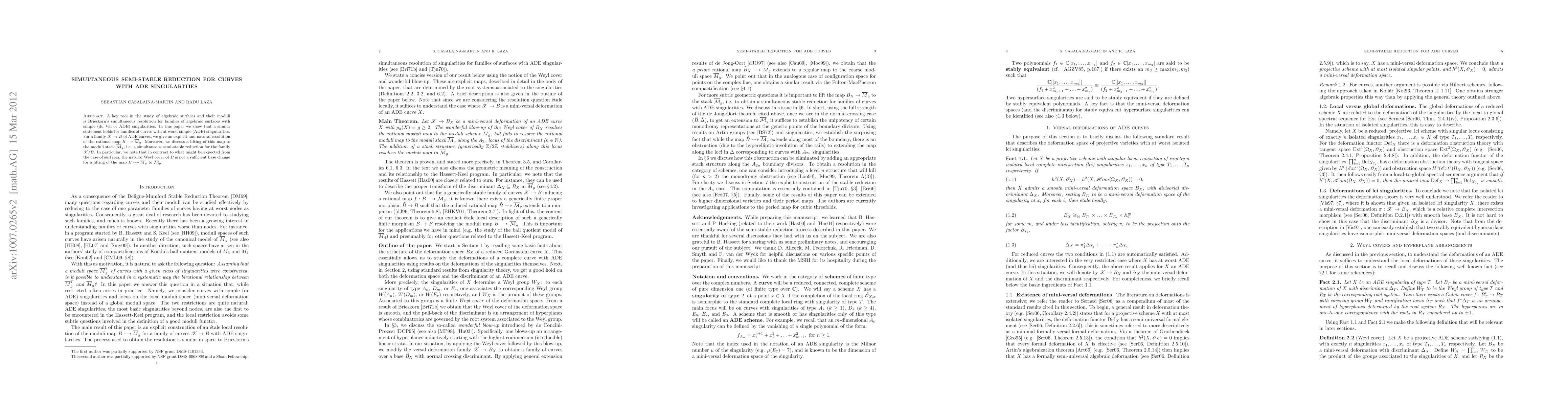This paper demonstrates the existence of a simultaneous semi-stable reduction for families of algebraic curves with ADE singularities, analogous to Brieskorn's resolution for surfaces. It provides an explicit resolution for the map from a base space to the moduli space, and notes that a natural Weyl cover is insufficient for lifting this map to the moduli stack.