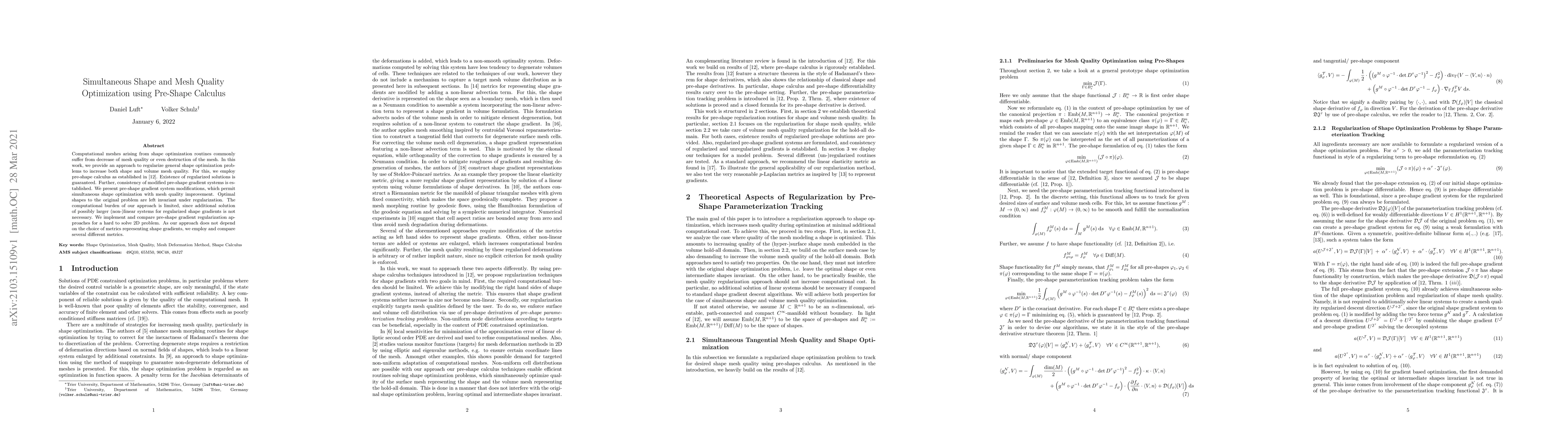 This paper proposes a method using pre-shape calculus to simultaneously optimize shape and mesh quality during computational shape optimization, ensuring regularized solutions and maintaining optimal shapes. The approach limits computational burden without requiring additional solution of larger systems.