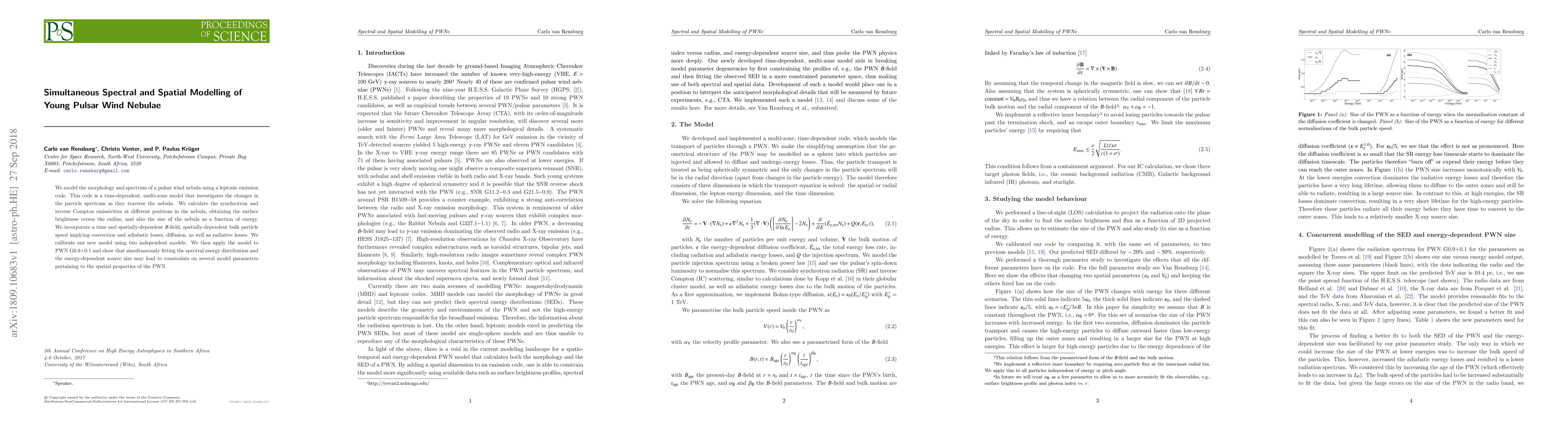 Researchers developed a model to study pulsar wind nebulae, incorporating spatial and spectral variations, and applied it to PWN G0.9+0.1, finding constraints on model parameters that affect the nebula's size and energy distribution.