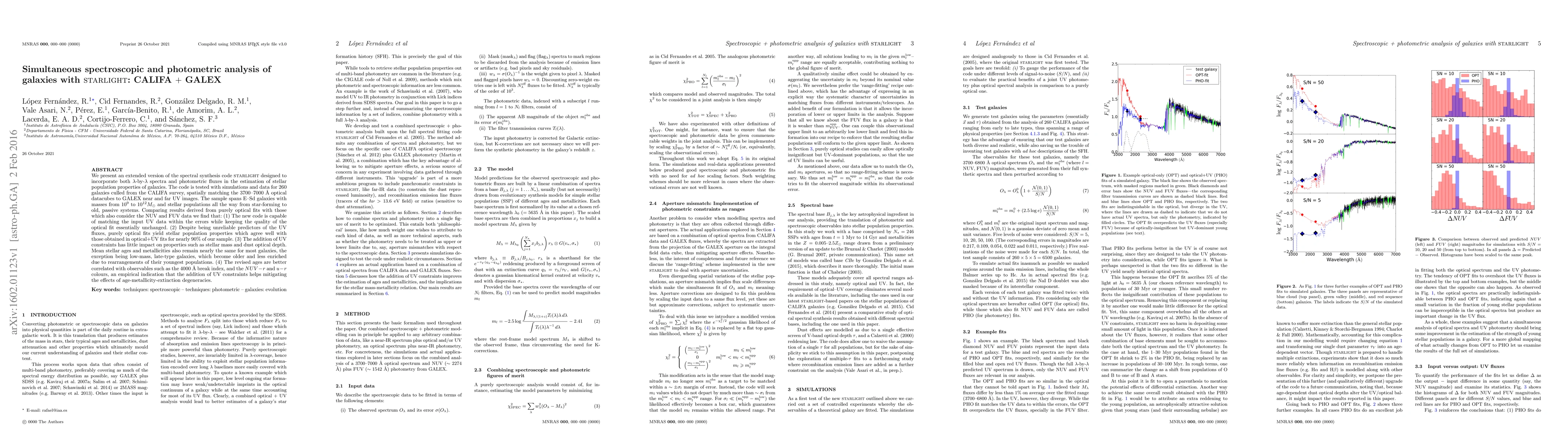 We present an extended version of the spectral synthesis code STARLIGHT designed to incorporate both $\lambda$-by-$\lambda$ spectra and photometric fluxes in the estimation of stellar population properties of galaxies. The code is tested with simulations and data for 260 galaxies culled from the CALIFA survey, spatially matching the 3700--7000 \AA\ optical datacubes to GALEX near and far UV images. The sample spans E--Sd galaxies with masses from $10^9$ to $10^{12} M_\odot$ and stellar populations all the way from star-forming to old, passive systems. Comparing results derived from purely optical fits with those which also consider the NUV and FUV data we find that: (1) The new code is capable of matching the input UV data within the errors while keeping the quality of the optical fit essentially unchanged. (2) Despite being unreliable predictors of the UV fluxes, purely optical fits yield stellar population properties which agree well with those obtained in optical+UV fits for nearly 90% of our sample. (3) The addition of UV constraints has little impact on properties such as stellar mass and dust optical depth. Mean stellar ages and metallicities also remain nearly the same for most galaxies, the exception being low-mass, late-type galaxies, which become older and less enriched due to rearrangements of their youngest populations. (4) The revised ages are better correlated with observables such as the 4000 \AA\ break index, and the $NUV - r$ and $u - r$ colours, an empirical indication that the addition of UV constraints helps mitigating the effects of age-metallicity-extinction degeneracies.