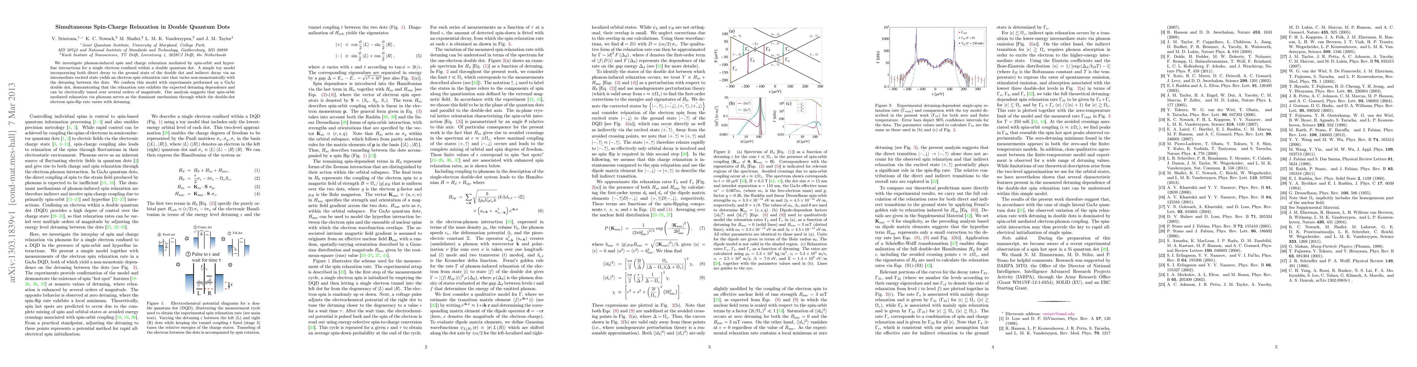 This paper explores phonon-induced spin and charge relaxation in a double quantum dot, showing that spin-orbit interactions dominate the spin-flip rate, which varies non-monotonically with the detuning between dots. Experimental results on a GaAs double dot confirm the model's predictions and demonstrate tunable relaxation rates.