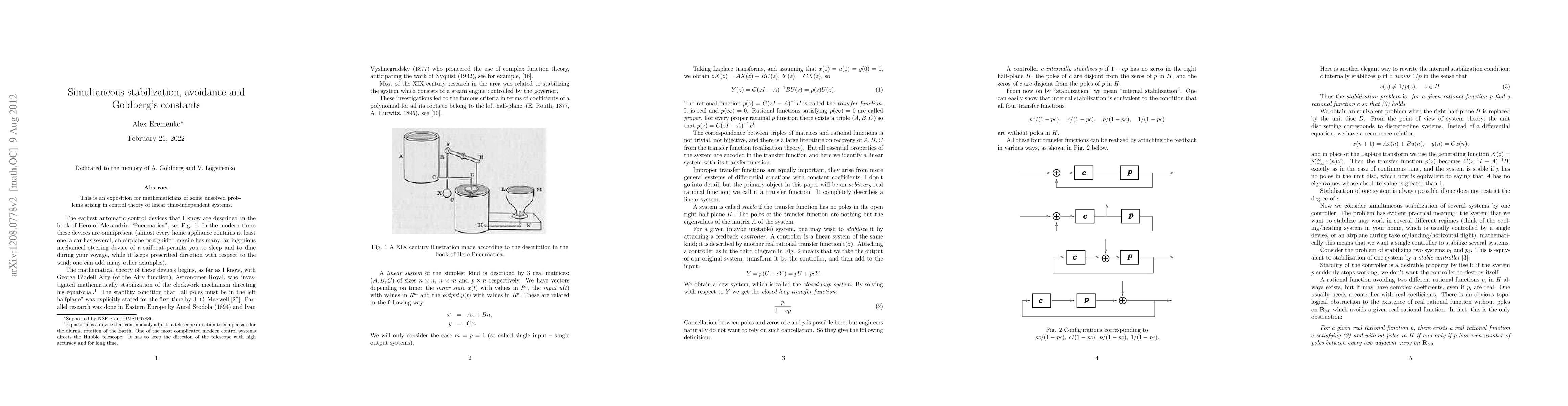 Summary: This paper discusses unresolved issues in control theory concerning the simultaneous stabilization and avoidance of states in linear time-independent systems, along with the introduction of Goldberg's constants in the context of these problems.