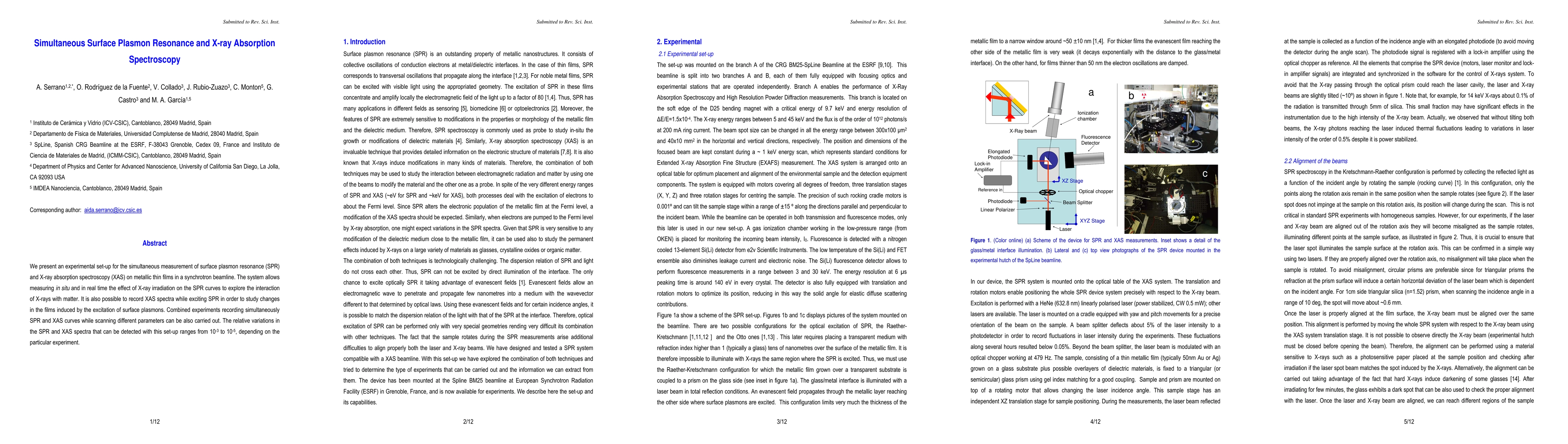 We present here an experimental set-up to perform simultaneously measurements of surface plasmon resonance (SPR) and X-ray absorption spectroscopy (XAS) in a synchrotron beamline. The system allows measuring in situ and in real time the effect of X-ray irradiation on the SPR curves to explore the interaction of X-rays with matter. It is also possible to record XAS spectra while exciting SPR in order to detect the changes in the electronic configuration of thin films induced by the excitation of surface plasmons. Combined experiments recording simultaneously SPR and XAS curves while scanning different parameters can be carried out. The relative variations in the SPR and XAS spectra that can be detected with this set-up ranges from 10-3 to 10-5, depending on the particular experiment.