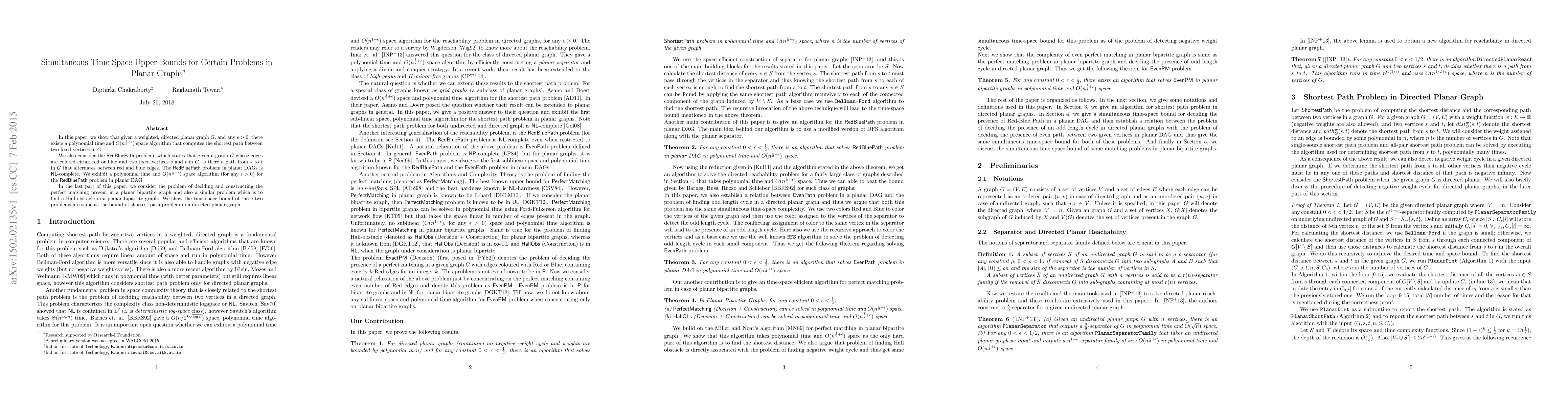 Researchers have developed polynomial-time algorithms with near-linear space complexity to solve various problems in planar graphs, including finding shortest paths and determining the presence of alternating red and blue paths.