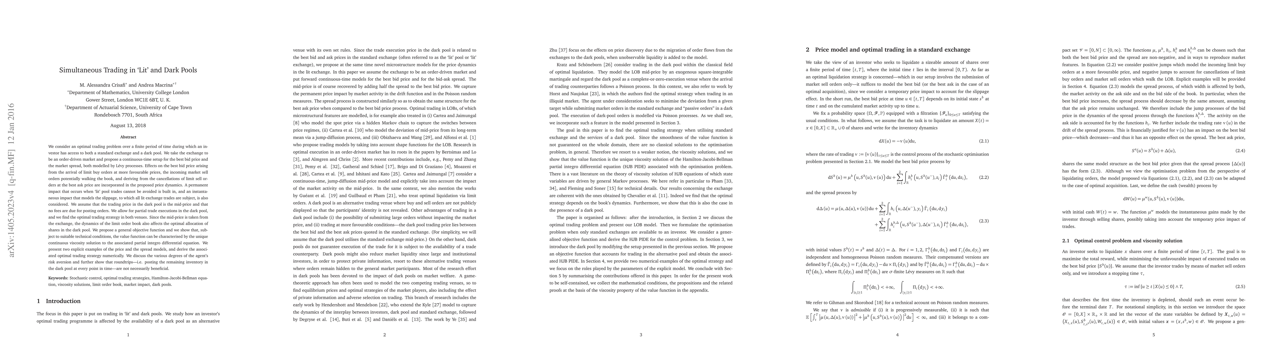 This paper studies an optimal trading strategy for an investor who can trade in both a standard exchange and a dark pool over a finite period. It models price dynamics using L\'evy processes and incorporates impacts from order arrivals, cancellations, and market slippage. The optimal strategy is derived through a partial integro differential equation, and it is shown that roundtrips in the dark pool are not always advantageous.