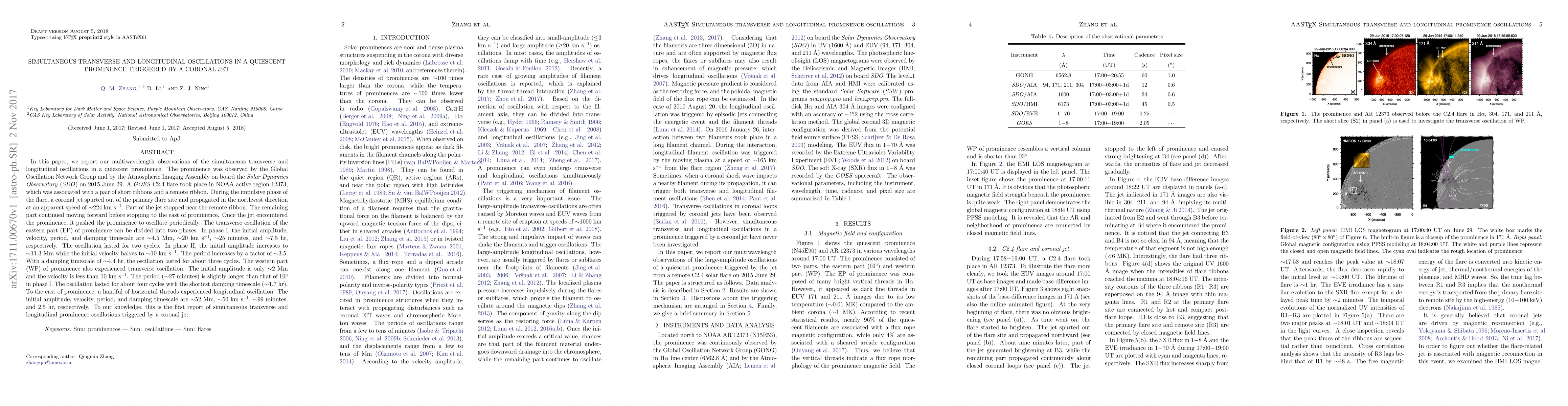 The research utilized multiwavelength observations from GONG and SDO/AIA on June 29, 2015, to study a quiescent prominence.