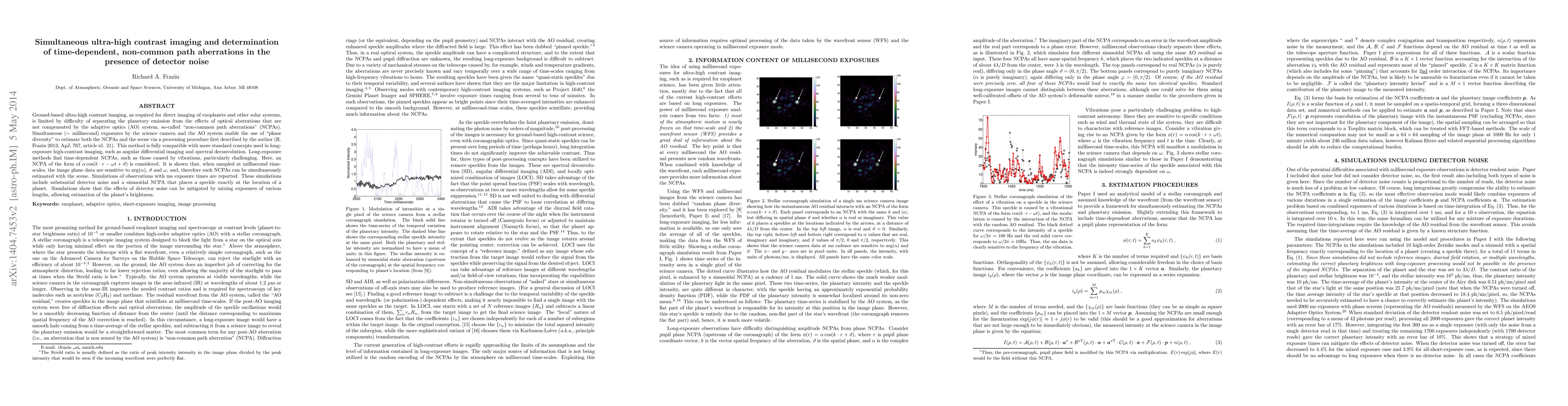 This paper proposes a method for simultaneous ultra-high contrast imaging and determination of time-dependent non-common path aberrations (NCPAs) using phase diversity and millisecond exposures. The technique allows for the estimation of NCPAs and planetary brightness despite detector noise, enhancing the direct imaging of exoplanets.