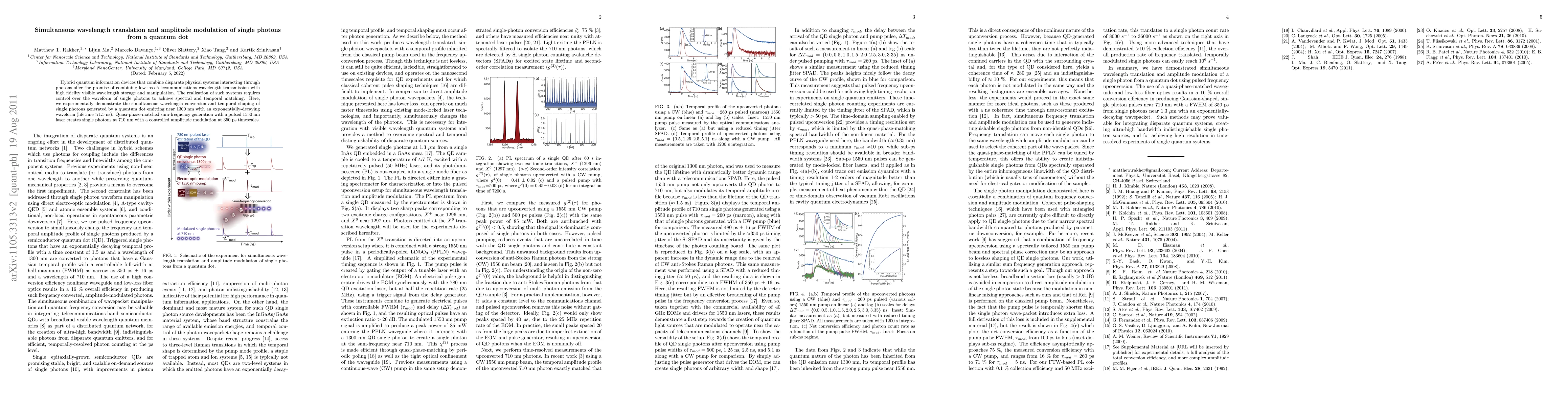 This paper demonstrates the ability to simultaneously translate the wavelength and modulate the amplitude of single photons emitted by a quantum dot, using quasi-phase-matched sum-frequency generation with a 1550 nm laser to achieve photons at 710 nm with controlled modulation at 350 ps timescales. This technique supports the development of hybrid quantum information devices combining telecommunications and visible wavelength systems.