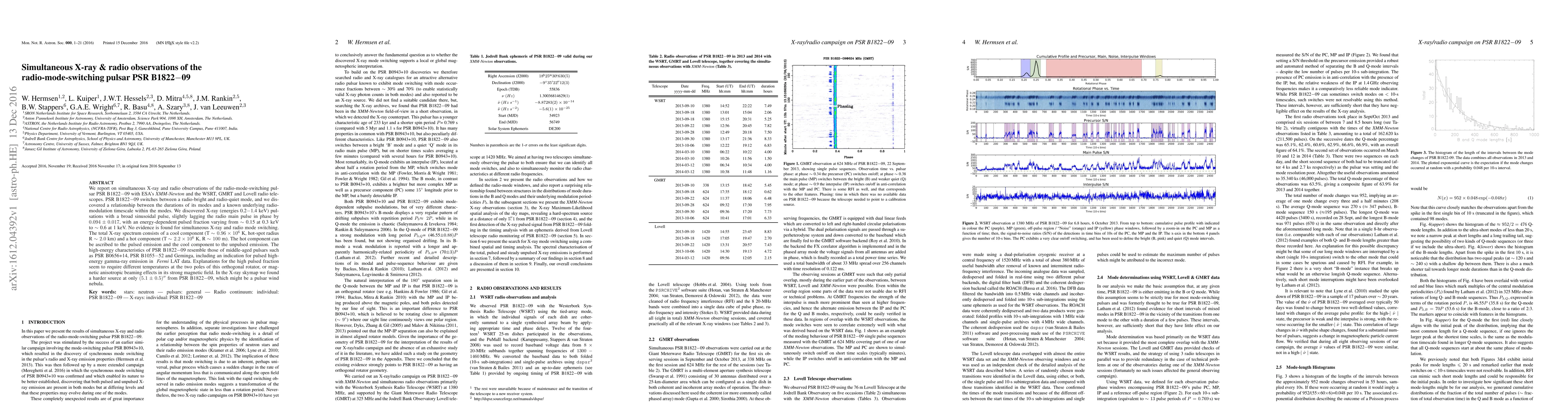 Simultaneous X-ray and radio observations of pulsar PSR B1822-09 reveal a cool (T ~ 0.96 x 10^6 K) and hot (T ~ 2.2 x 10^6 K) component in its X-ray spectrum, with no evidence of simultaneous mode switching. A harder X-ray source, potentially a pulsar wind nebula, is found near PSR B1822-09.