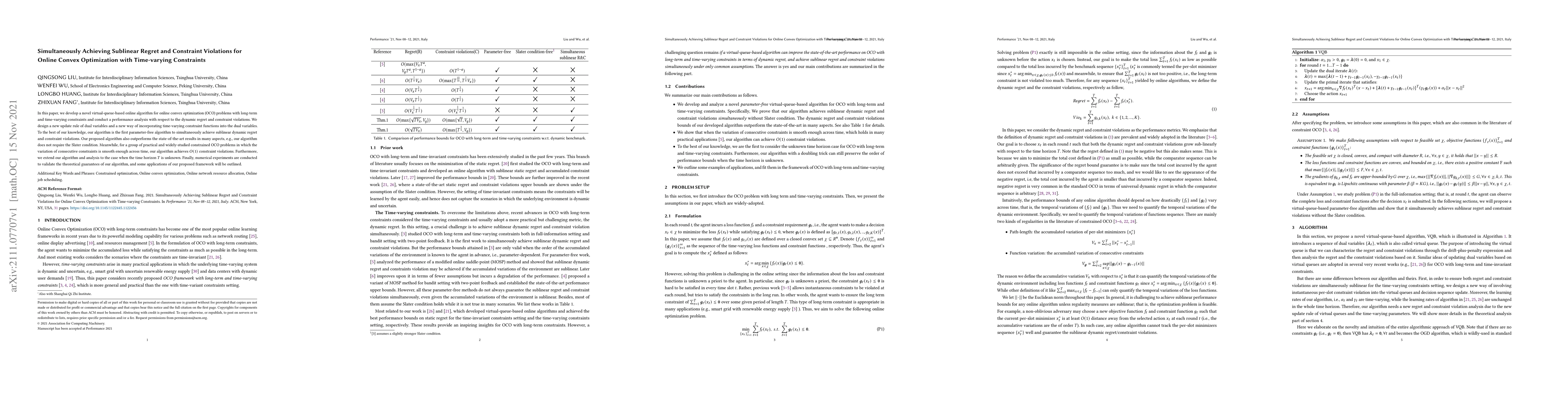 This paper introduces a novel virtual-queue-based online algorithm for online convex optimization with time-varying constraints, achieving sublinear dynamic regret and constraint violations. The algorithm is parameter-free and outperforms existing methods, especially when constraints vary smoothly over time.