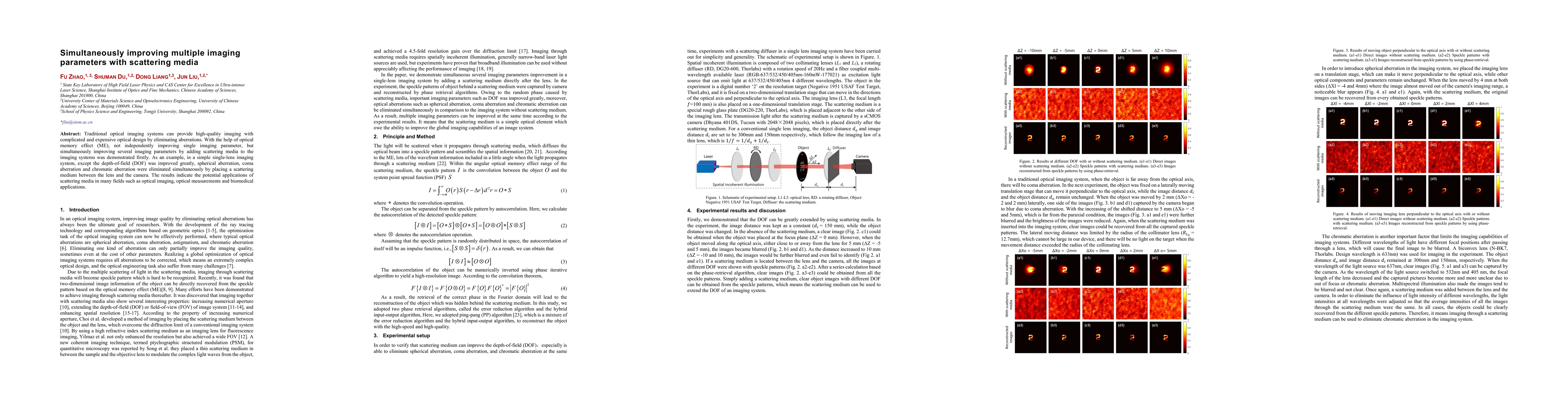 This paper demonstrates how adding scattering media to optical imaging systems can simultaneously improve multiple imaging parameters, including depth-of-field, and eliminate aberrations like spherical, coma, and chromatic aberrations. The optical memory effect enables these enhancements, showing potential for applications in optical imaging and biomedical fields.