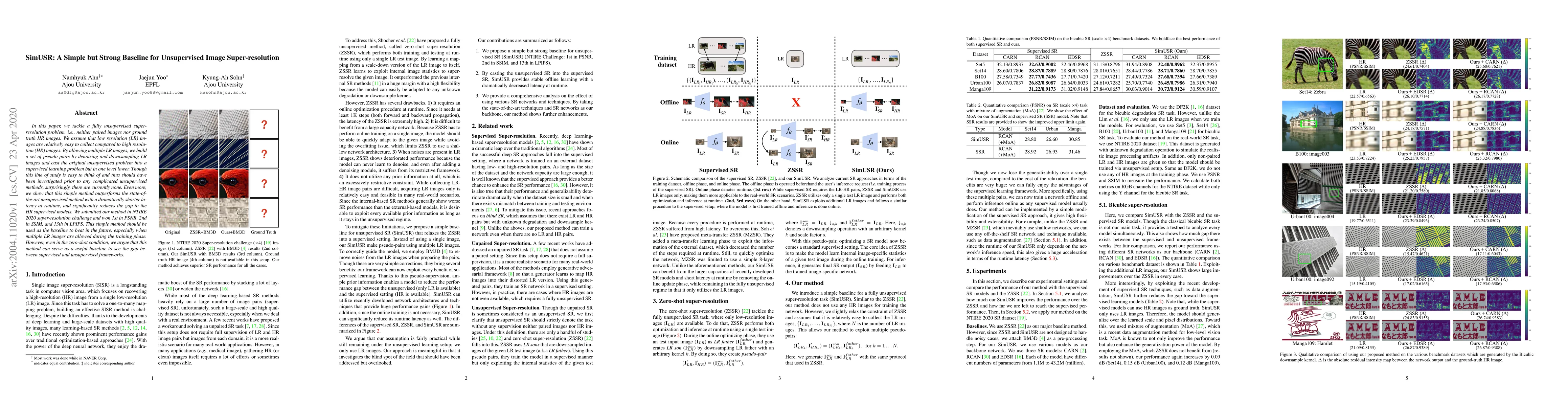In this paper, we tackle a fully unsupervised super-resolution problem, i.e., neither paired images nor ground truth HR images. We assume that low resolution (LR) images are relatively easy to collect compared to high resolution (HR) images. By allowing multiple LR images, we build a set of pseudo pairs by denoising and downsampling LR images and cast the original unsupervised problem into a supervised learning problem but in one level lower. Though this line of study is easy to think of and thus should have been investigated prior to any complicated unsupervised methods, surprisingly, there are currently none. Even more, we show that this simple method outperforms the state-of-the-art unsupervised method with a dramatically shorter latency at runtime, and significantly reduces the gap to the HR supervised models. We submitted our method in NTIRE 2020 super-resolution challenge and won 1st in PSNR, 2nd in SSIM, and 13th in LPIPS. This simple method should be used as the baseline to beat in the future, especially when multiple LR images are allowed during the training phase. However, even in the zero-shot condition, we argue that this method can serve as a useful baseline to see the gap between supervised and unsupervised frameworks.