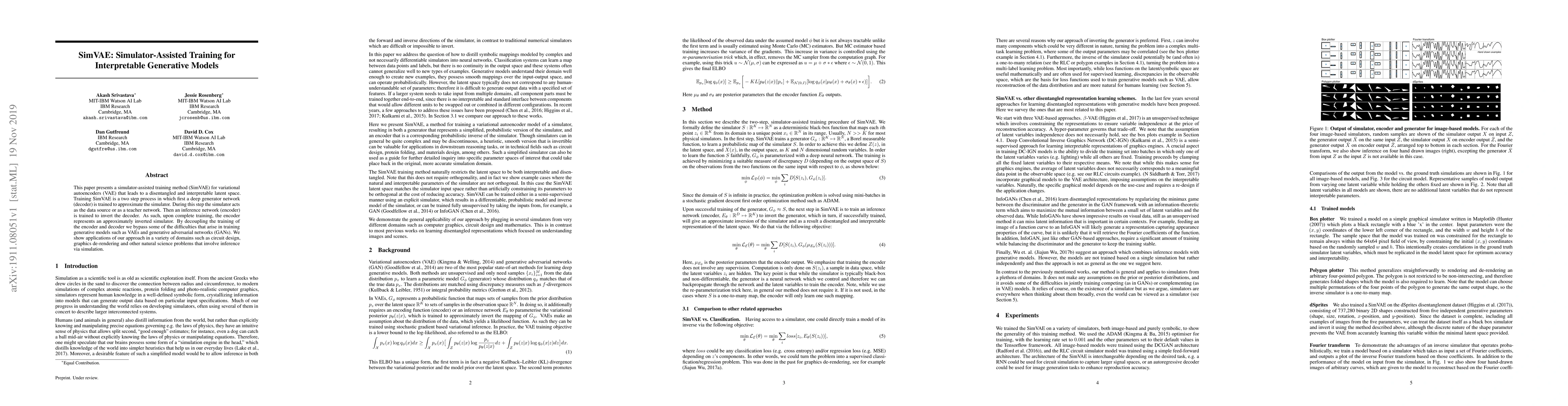 SimVAE introduces a training method for variational autoencoders that leverages a simulator to create a disentangled and interpretable latent space. This two-step process trains a generator to mimic the simulator and then an encoder to invert this generator, leading to improved interpretability and application in diverse fields like circuit design and graphics.