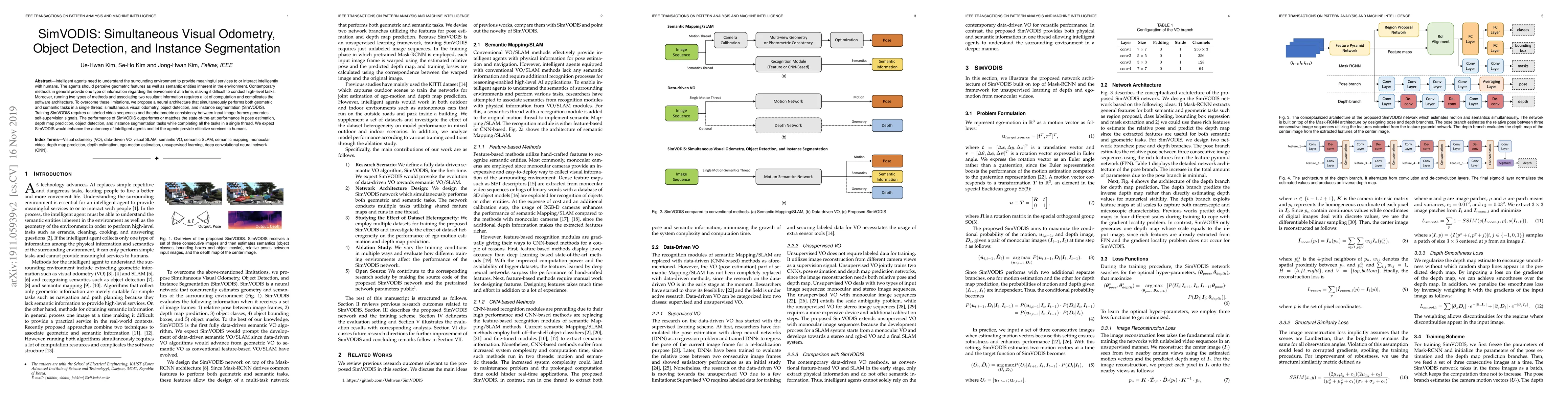 SimVODIS integrates simultaneous visual odometry, object detection, and instance segmentation in a single neural architecture, achieving state-of-the-art performance in multiple tasks while reducing computational load and simplifying software architecture. This approach enhances the autonomy and service capabilities of intelligent agents.