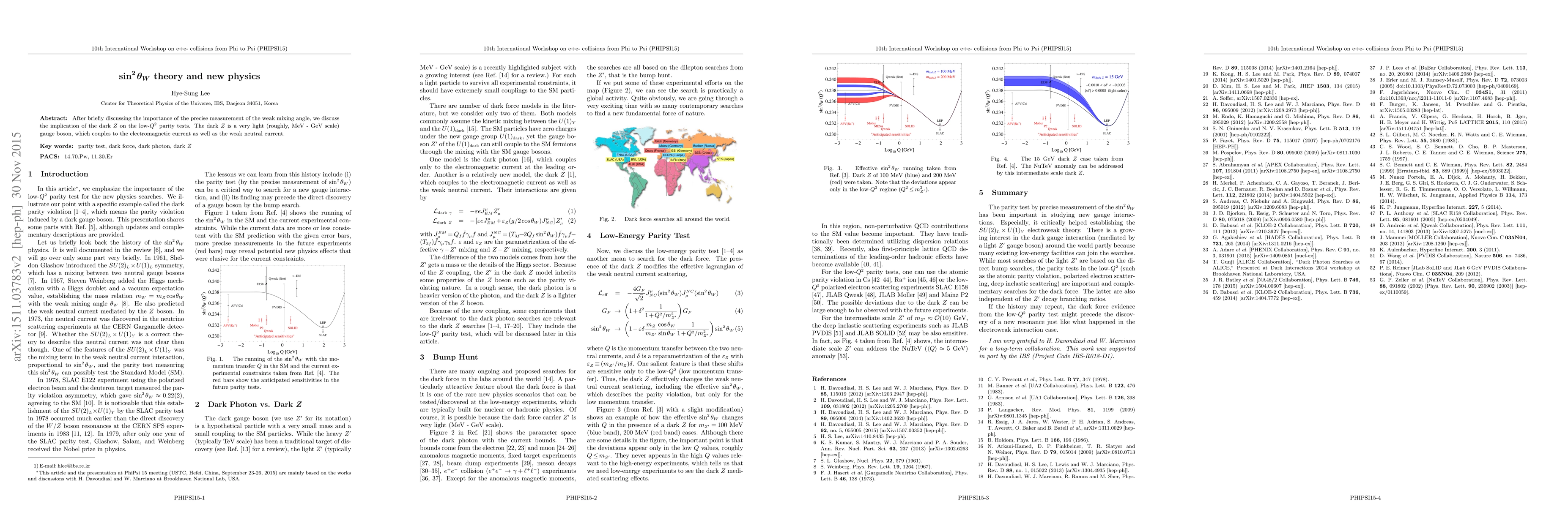 After briefly discussing the importance of the precise measurement of the weak mixing angle, we discuss the implication of the dark Z on the low-Q^2 parity tests. The dark Z is a very light (roughly, MeV - GeV scale) gauge boson, which couples to the electromagnetic current as well as the weak neutral current.