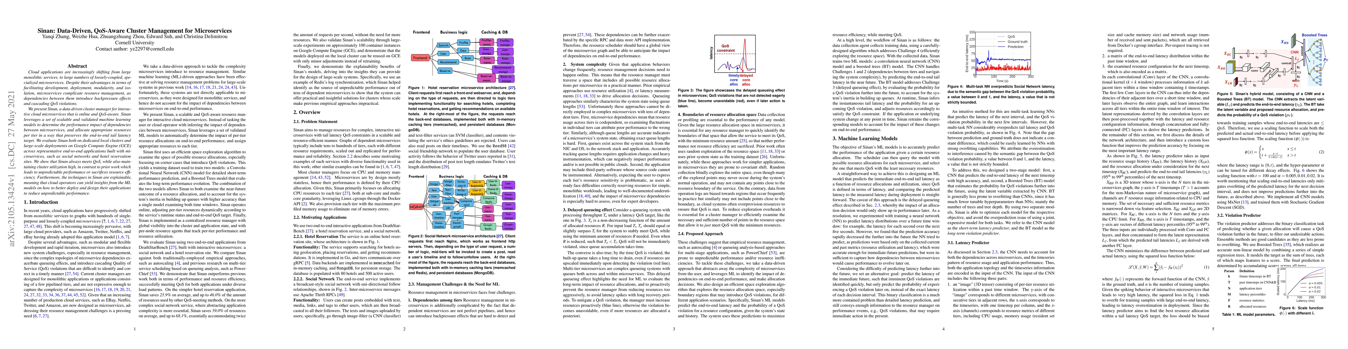 Sinan is a data-driven, QoS-aware cluster management system for microservices that uses machine learning to optimize resource allocation and maintain performance targets, demonstrating consistent QoS and high cluster utilization in diverse cloud applications. It also provides explainability to aid operators in application design and deployment.