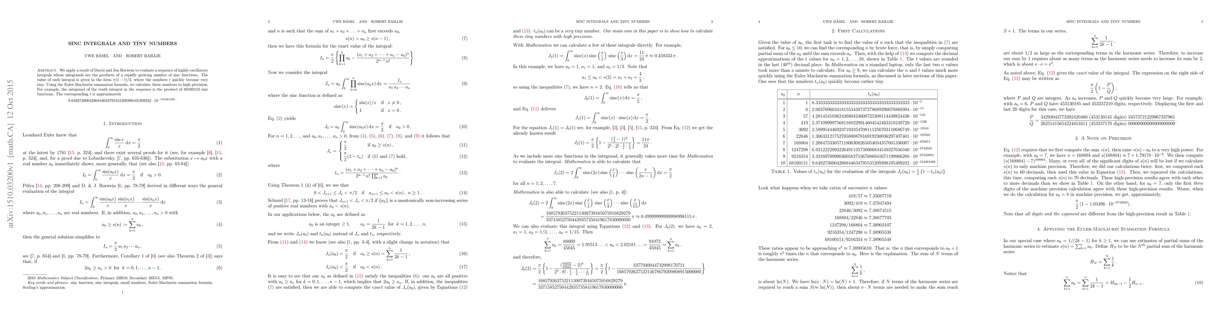 Researchers used a mathematical formula to calculate highly oscillatory integrals involving sinc functions with extremely small numbers, revealing the value of each integral in terms of pi, and demonstrated the precision of their calculations using Euler-Maclaurin summation formula.