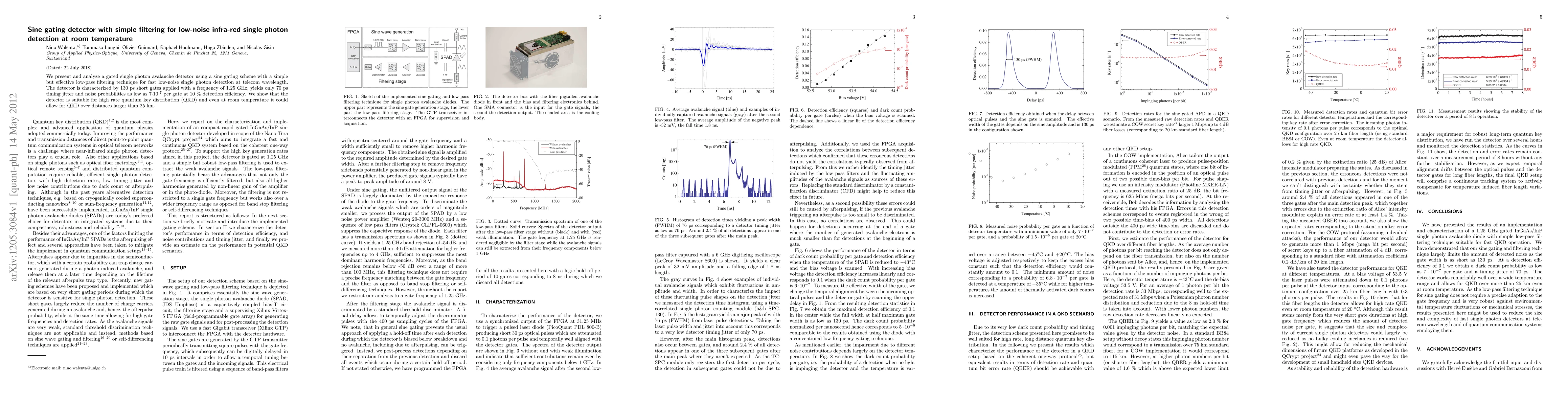 We present and analyze a gated single photon avalanche detector using a sine gating scheme with a simple but effective low-pass filtering technique for fast low-noise single photon detection at telecom wavelength. The detector is characterized by 130 ps short gates applied with a frequency of 1.25 GHz, yields only 70 ps timing jitter and noise probabilities as low as 7E-7 per gate at 10% detection efficiency. We show that the detector is suitable for high rate quantum key distribution (QKD) and even at room temperature it could allow for QKD over distances larger than 25 km.