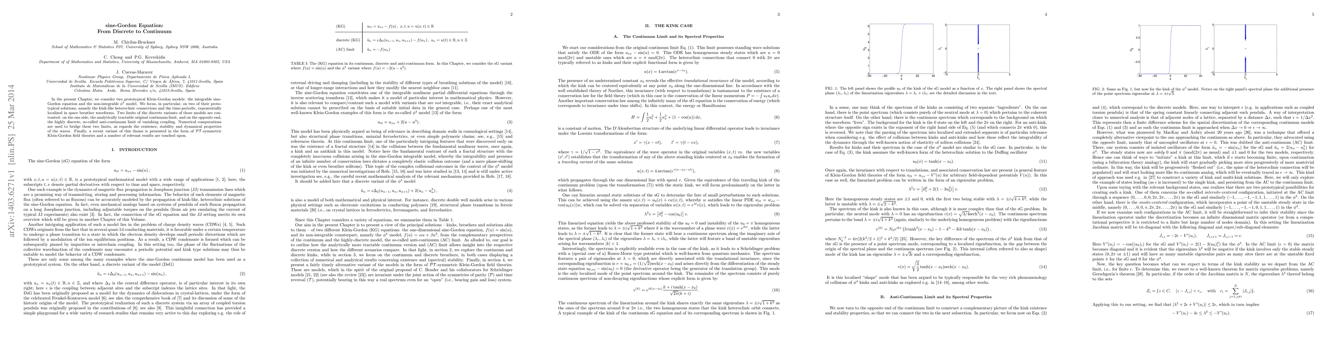 This paper explores the sine-Gordon equation and the $\phi^4$ model, focusing on their solutions like kink-like connections and breather waveforms. It contrasts the continuum and anti-continuum limits, using numerical methods to analyze the existence, stability, and dynamics of these solutions, and briefly touches on $\mathcal{PT}$-symmetric Klein-Gordon field theories.