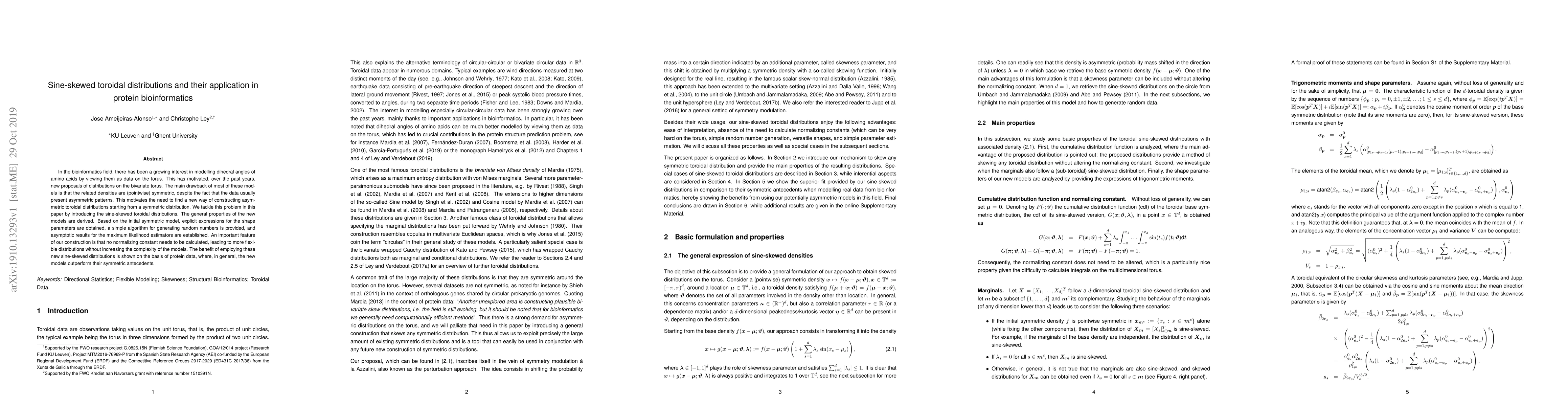 In the bioinformatics field, there has been a growing interest in modelling dihedral angles of amino acids by viewing them as data on the torus. This has motivated, over the past years, new proposals of distributions on the bivariate torus. The main drawback of most of these models is that the related densities are (pointwise) symmetric, despite the fact that the data usually present asymmetric patterns. This motivates the need to find a new way of constructing asymmetric toroidal distributions starting from a symmetric distribution. We tackle this problem in this paper by introducing the sine-skewed toroidal distributions. The general properties of the new models are derived. Based on the initial symmetric model, explicit expressions for the shape parameters are obtained, a simple algorithm for generating random numbers is provided, and asymptotic results for the maximum likelihood estimators are established. An important feature of our construction is that no normalizing constant needs to be calculated, leading to more flexible distributions without increasing the complexity of the models. The benefit of employing these new sine-skewed distributions is shown on the basis of protein data, where, in general, the new models outperform their symmetric antecedents.