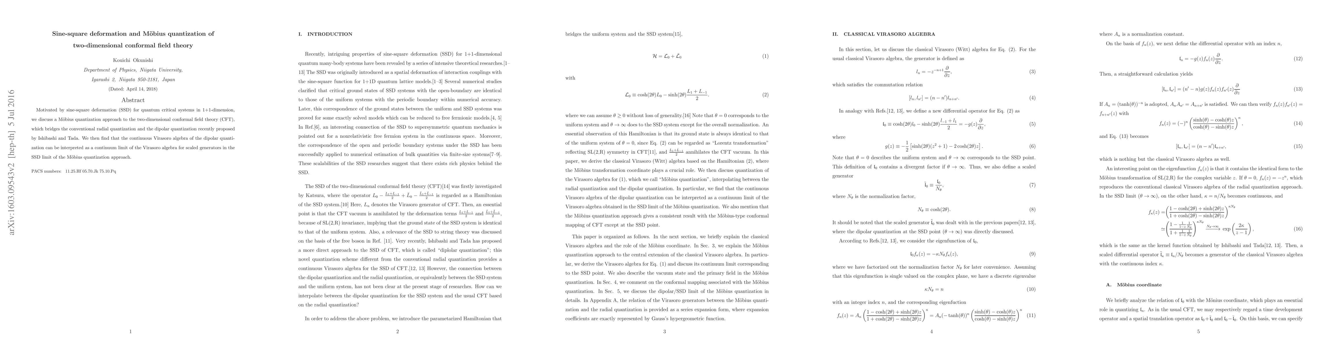 Summary: The paper introduces a Mobius quantization method to two-dimensional conformal field theory, connecting conventional radial quantization with the dipolar quantization approach, and demonstrates how the Virasoro algebra in dipolar quantization emerges from the sine-square deformation limit.